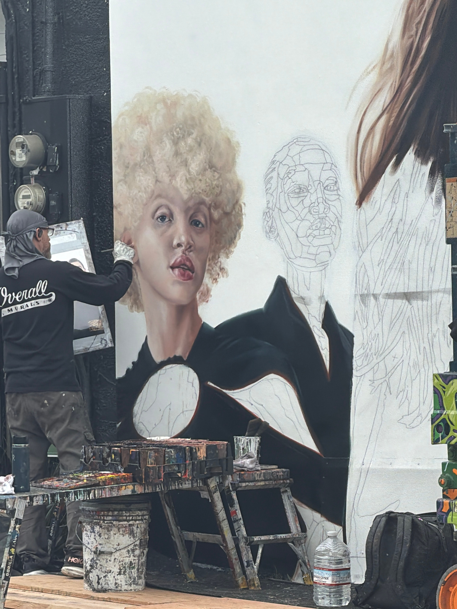 A mural of a woman with blonde curly hair and fair skin is being painted on a building in Los Angeles, United States of America. The mural is only partially complete, with the face of the woman filled…read more