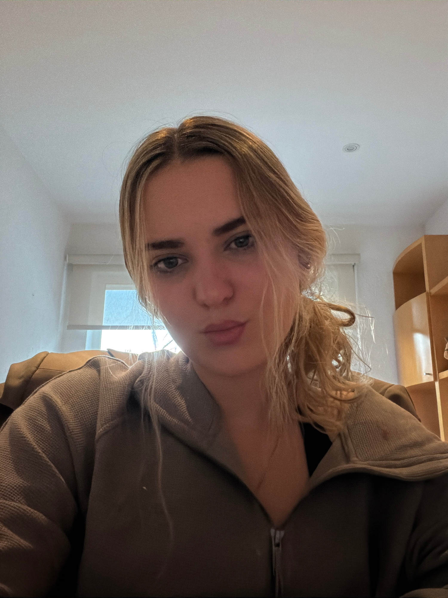 An image taken in an indoor setting, identified as San Bernardino Tlaxcalancingo, Mexico, depicts a young adult female from the chest up, centered and facing the camera directly. She has light-colored…read more