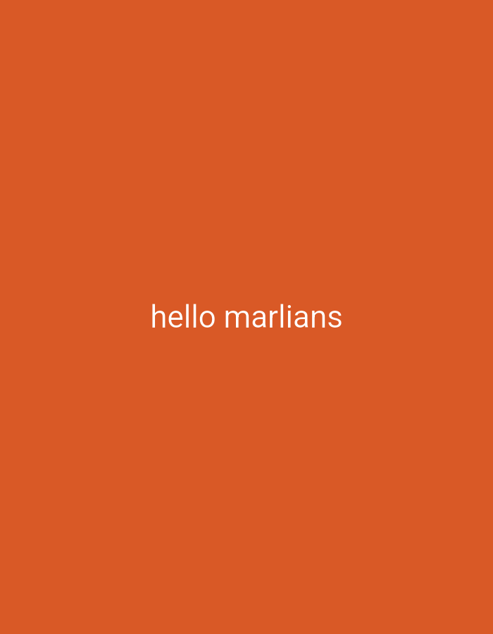The image is a solid orange background with the white text "hello marlians" centered. There is no indication of location. No people, subjects, objects, actions, or interactions are visible.