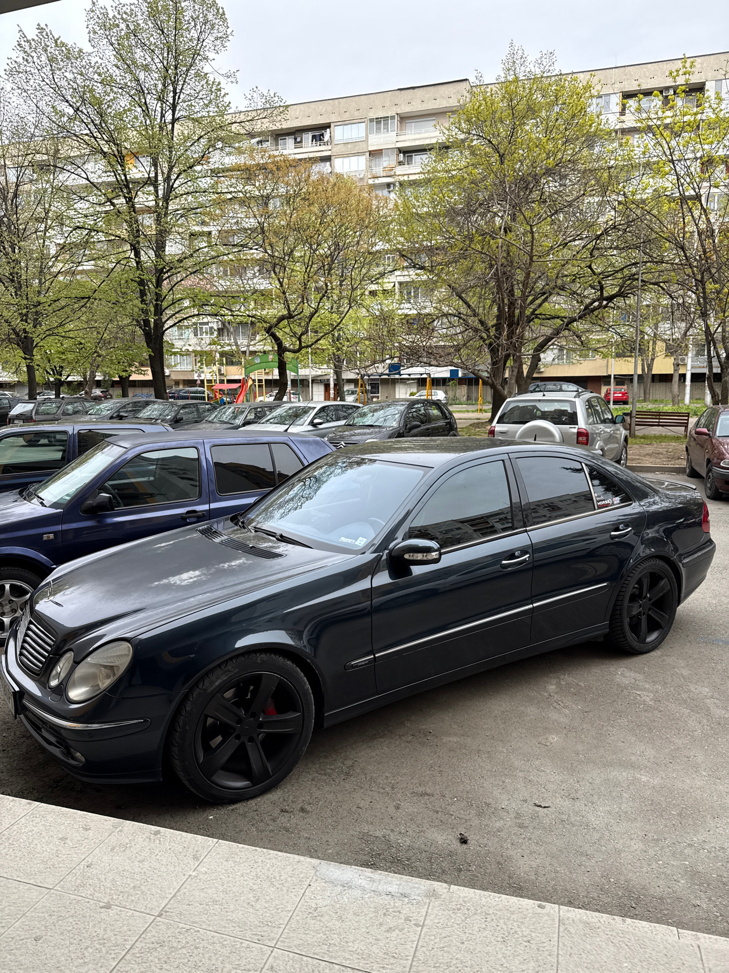 A medium shot depicts a street scene in what appears to be a residential area of Stara Zagora, Bulgaria. A dark-colored Mercedes-Benz sedan with black aftermarket rims is parked at an angle along theβ¦read more