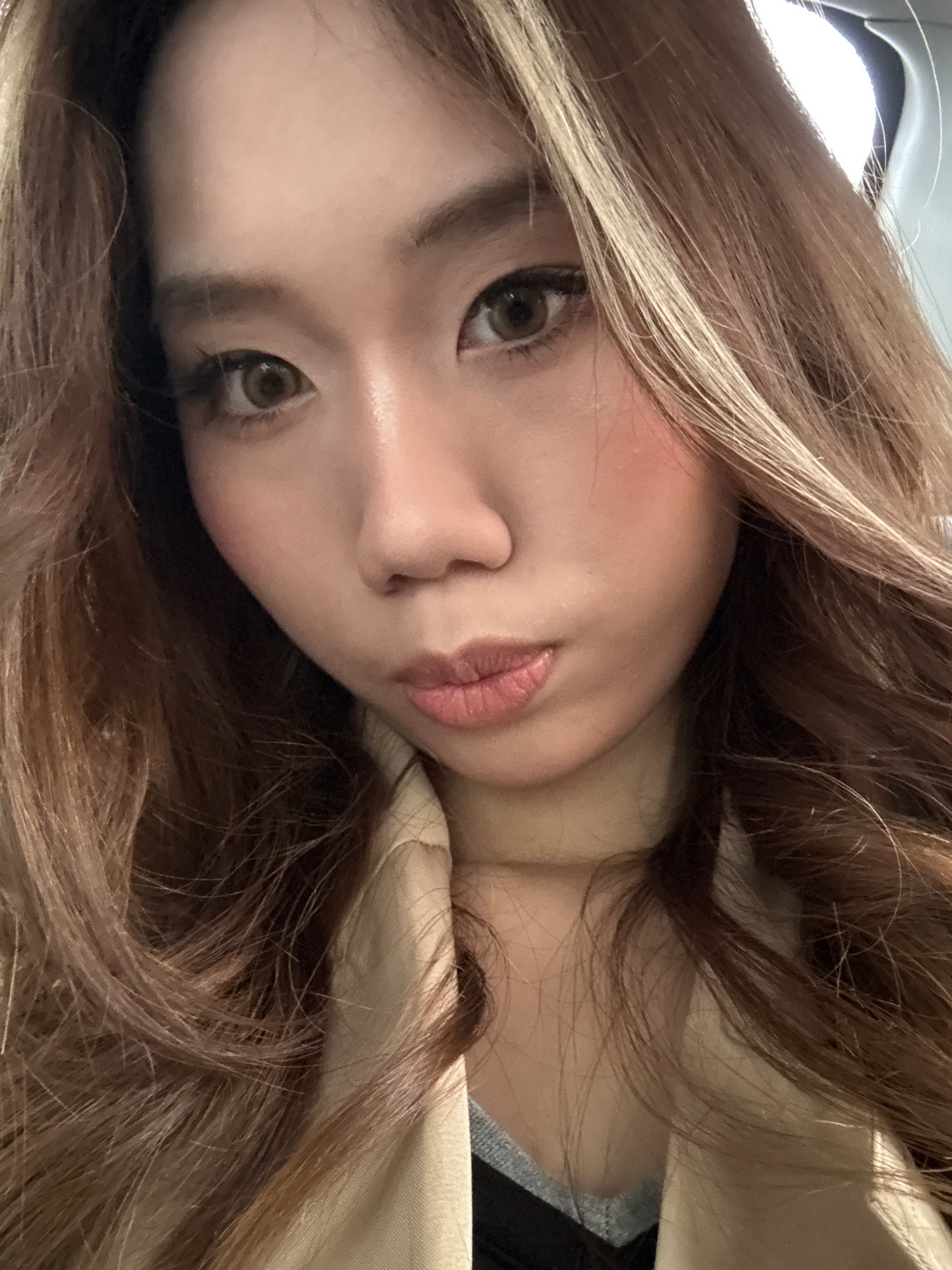 A close-up, slightly angled portrait of a woman with long brown hair with blonde highlights. She is wearing a light brown jacket with a visible collar. Her face is visible, showing her eyes, nose, and…read more