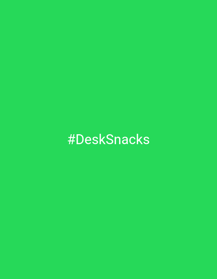 A solid green background with the text "#DeskSnacks" in white in the center. There is no indication of Chaikovsky, Russia.