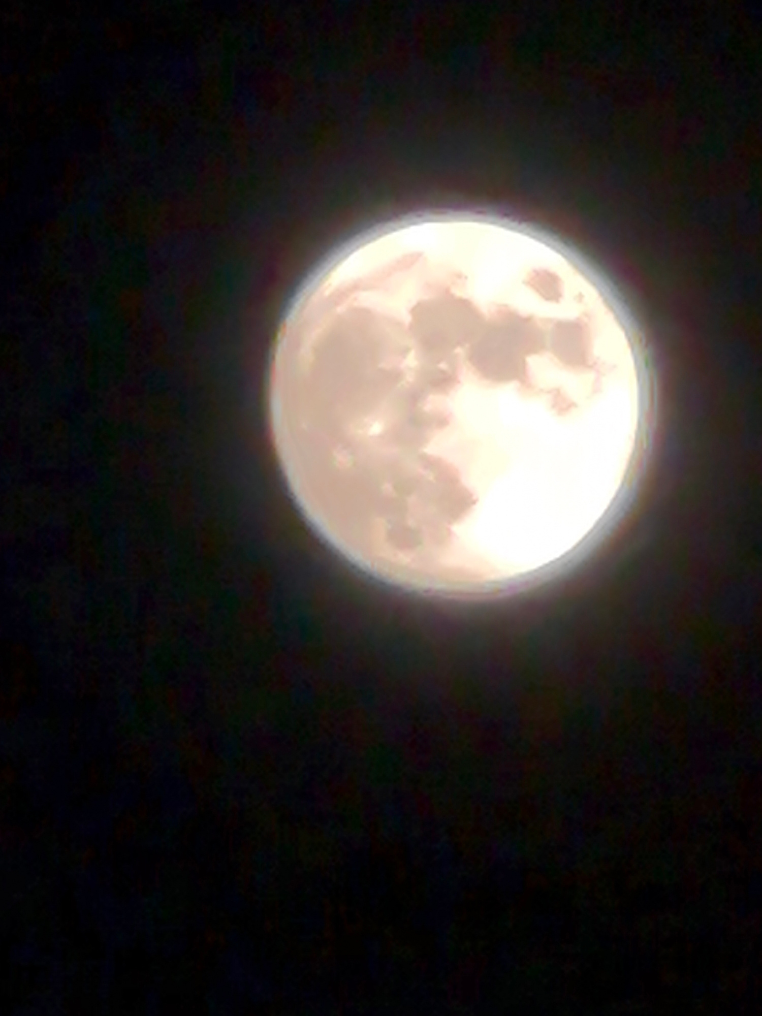 A full moon dominates the upper right quadrant of the image, set against a dark, presumably night sky. The moon's surface displays varying shades of light and shadow, indicating its craters and topogrβ¦read more