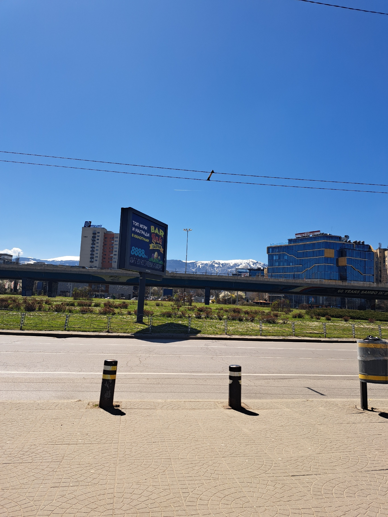 Here's a detailed description of the image: **General Overview:** The image presents a clear, daytime scene that combines urban and natural elements. It seems to be taken from an elevated position, l…read more