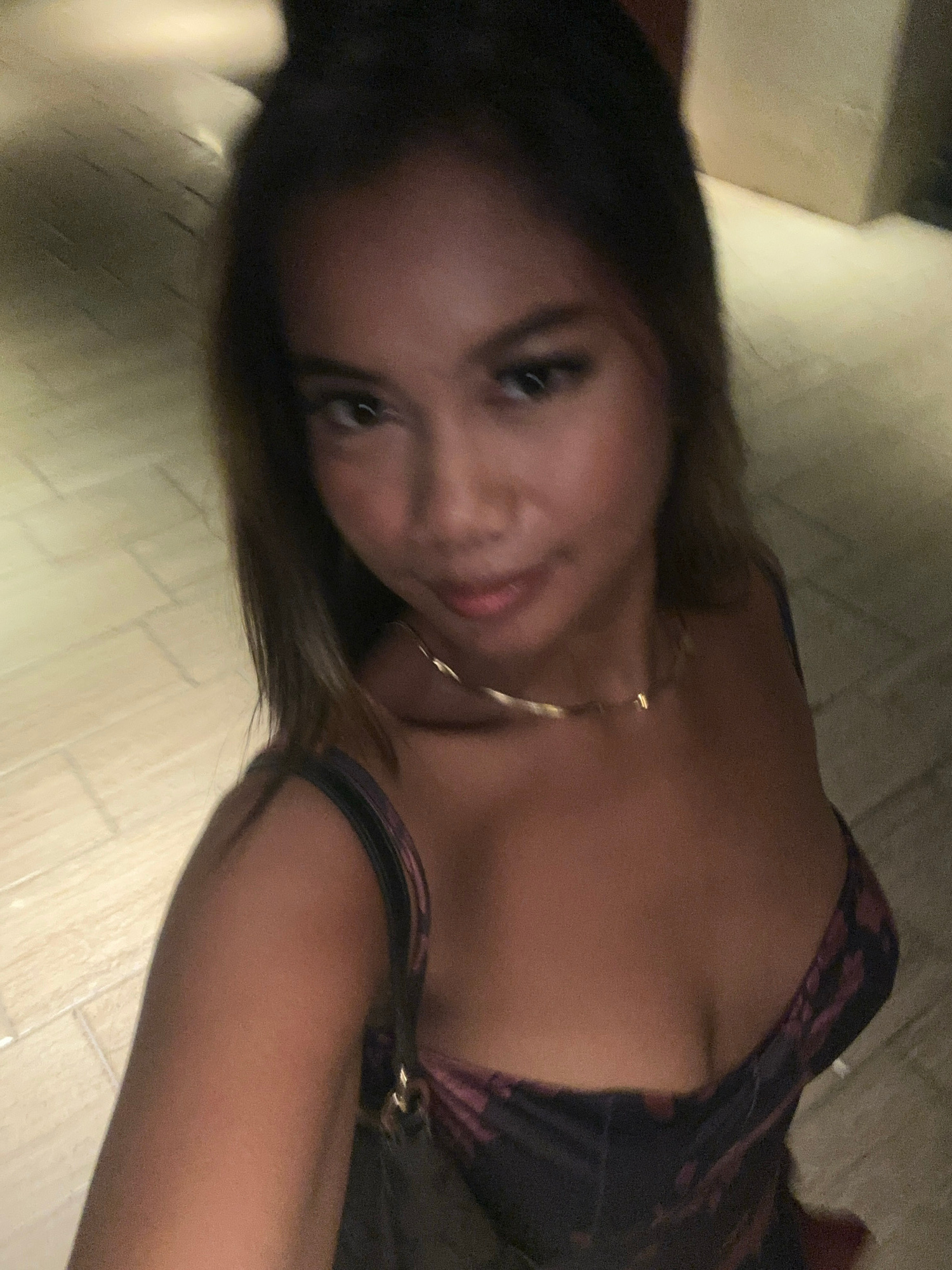 This slightly blurry and grainy close-up image features a young woman posing for what appears to be a selfie, with her face tilted towards the camera from the upper left side of the frame. She has lon…read more