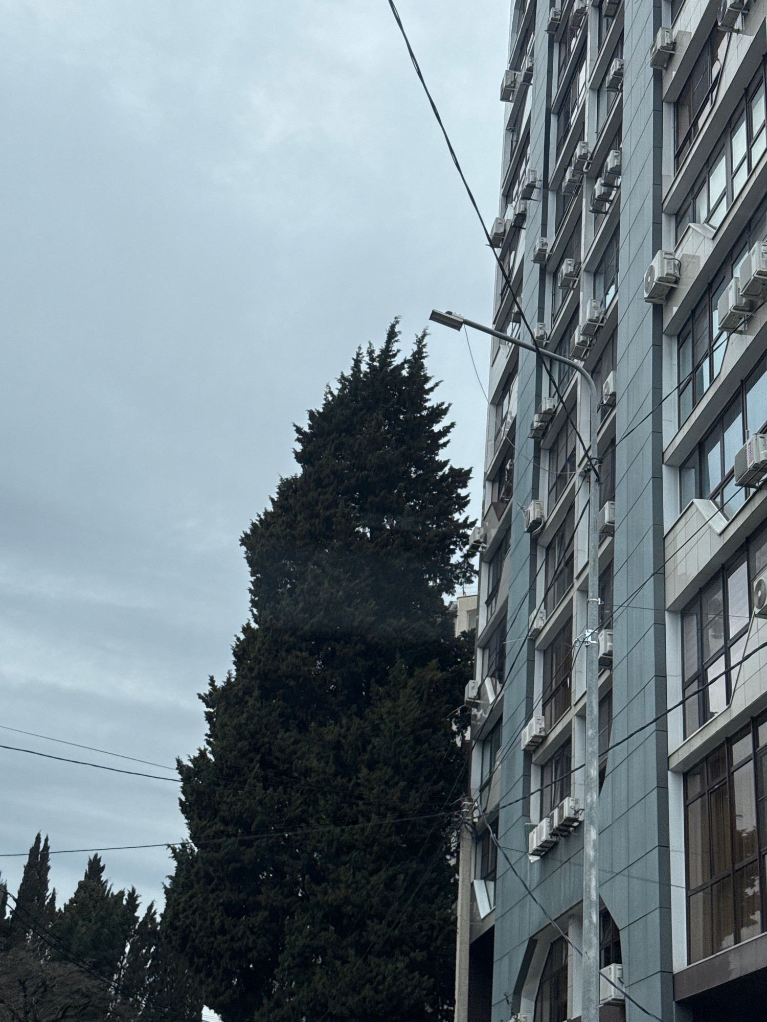 A low-angle, medium shot captures a multi-story building, possibly commercial, with rows of windows and numerous air conditioning units affixed to its exterior. The building appears to be constructedβ¦read more