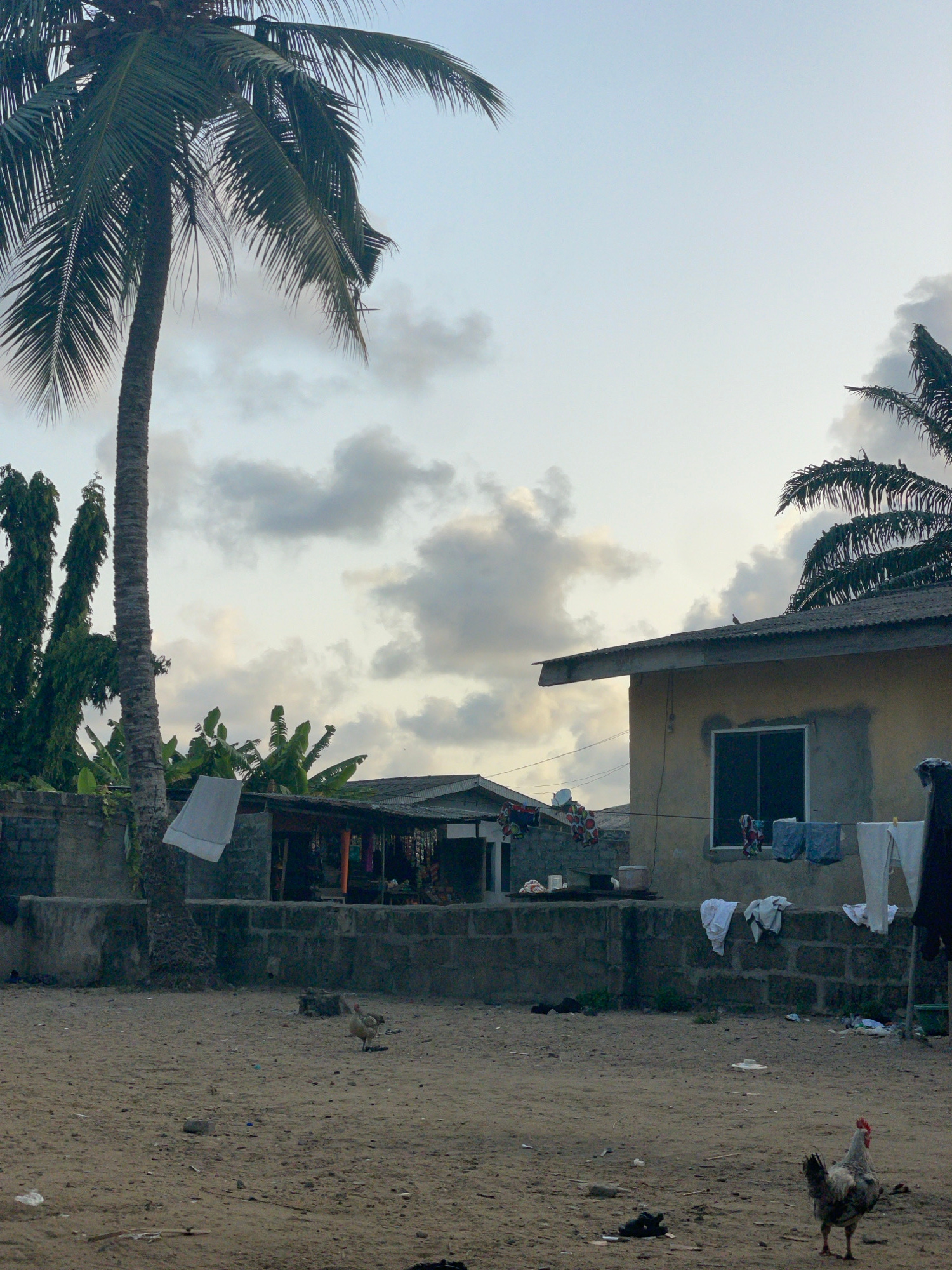 The image captures a street scene in Badagry, Nigeria. The landscape is characterized by sandy terrain, with structures including a multi-story building featuring visible laundry lines, a window and a…read more