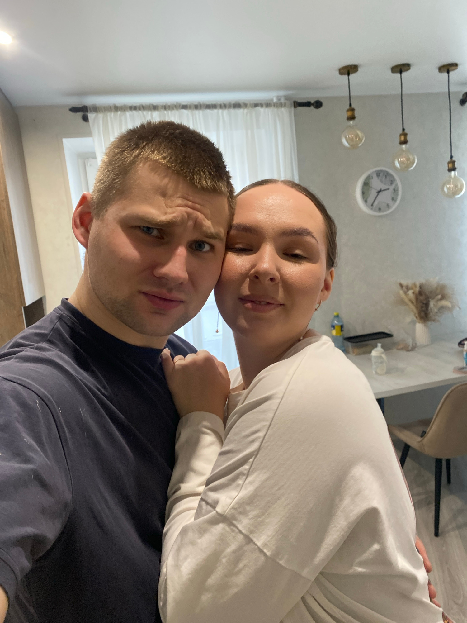 A selfie captures a moment between a man and a woman in an indoor setting, likely a home in Chaikovsky, Russia. The image is rotated counter-clockwise. The woman, positioned closer to the camera and…read more