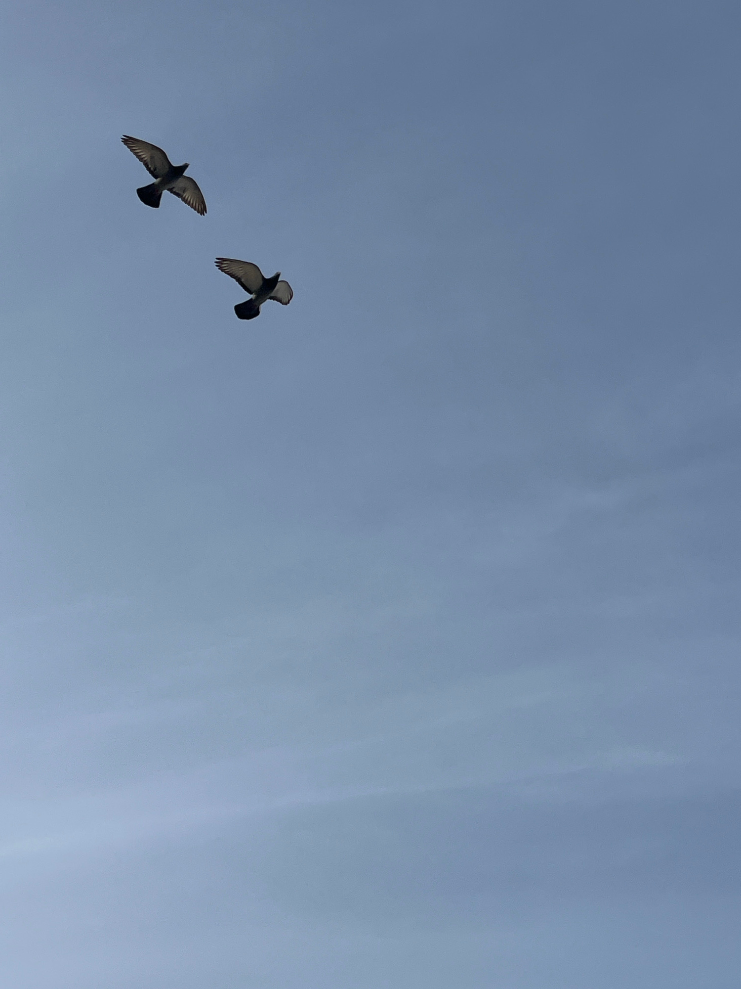 Two birds are flying in a blue sky. The location is not specified, and there is no information provided about it being in Alanya, Turkey.