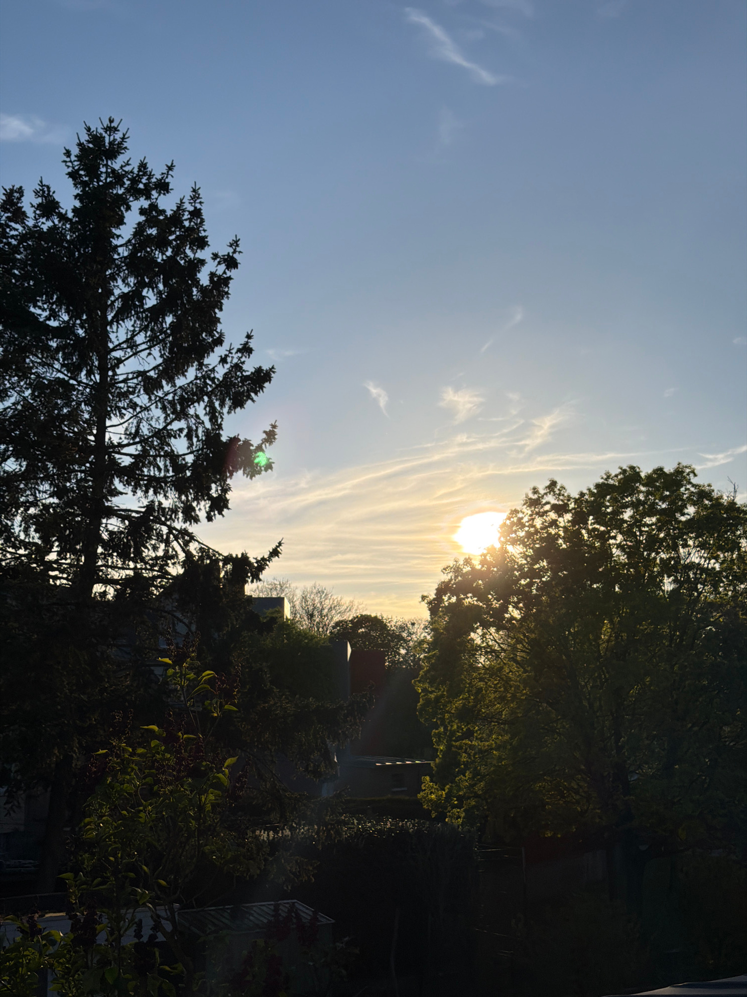 The image captures a vibrant outdoor scene, likely in Esch-sur-Alzette, Luxembourg, dominated by a bright sun and lush foliage. The sky, a clear expanse of light blue, features delicate, wispy white c…read more