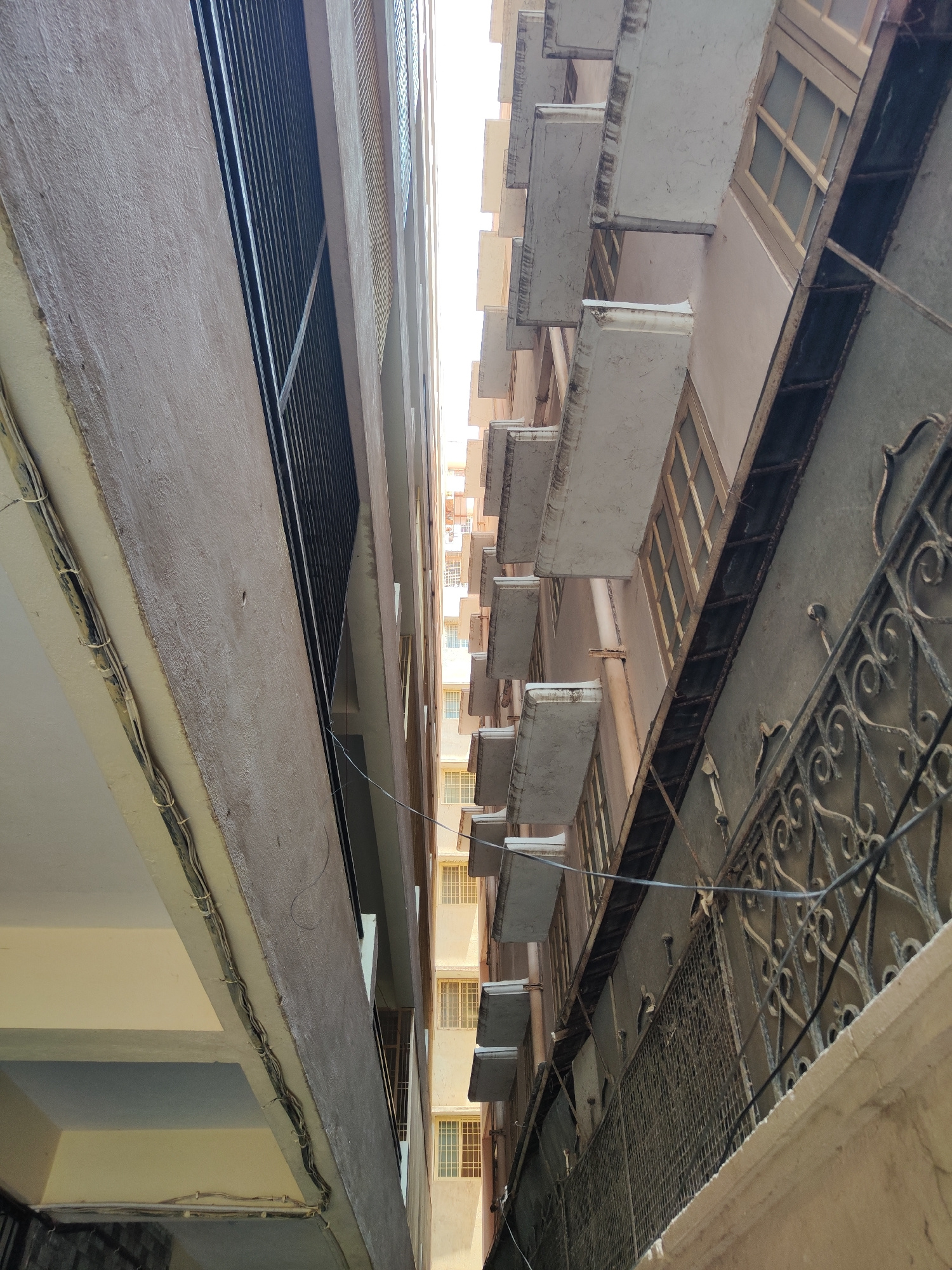The image depicts an upward-looking view of a building exterior, located in an urban area, possibly in the city of Unknown. The buildings are several stories tall, with a light color scheme. The archiβ¦read more