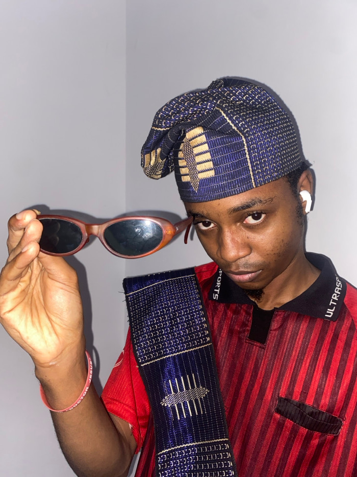This medium close-up image, rotated 90 degrees counter-clockwise, features a young man with dark skin, looking directly at the camera with a neutral expression. He is positioned against a plain, light…read more