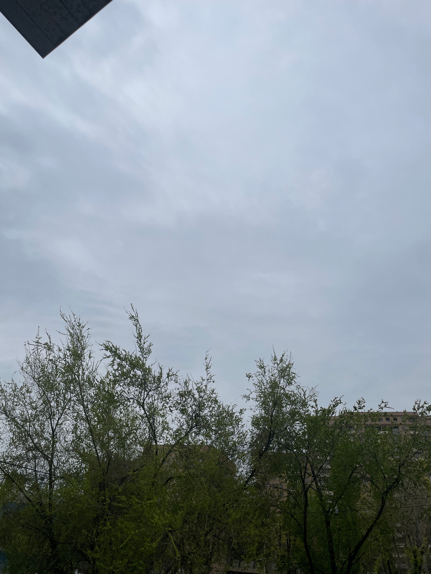 This media file captures an upward-looking view of an overcast sky framed by natural and urban elements. The primary subject is a vast, light grey, cloudy sky that dominates the upper and left-centralβ¦read more