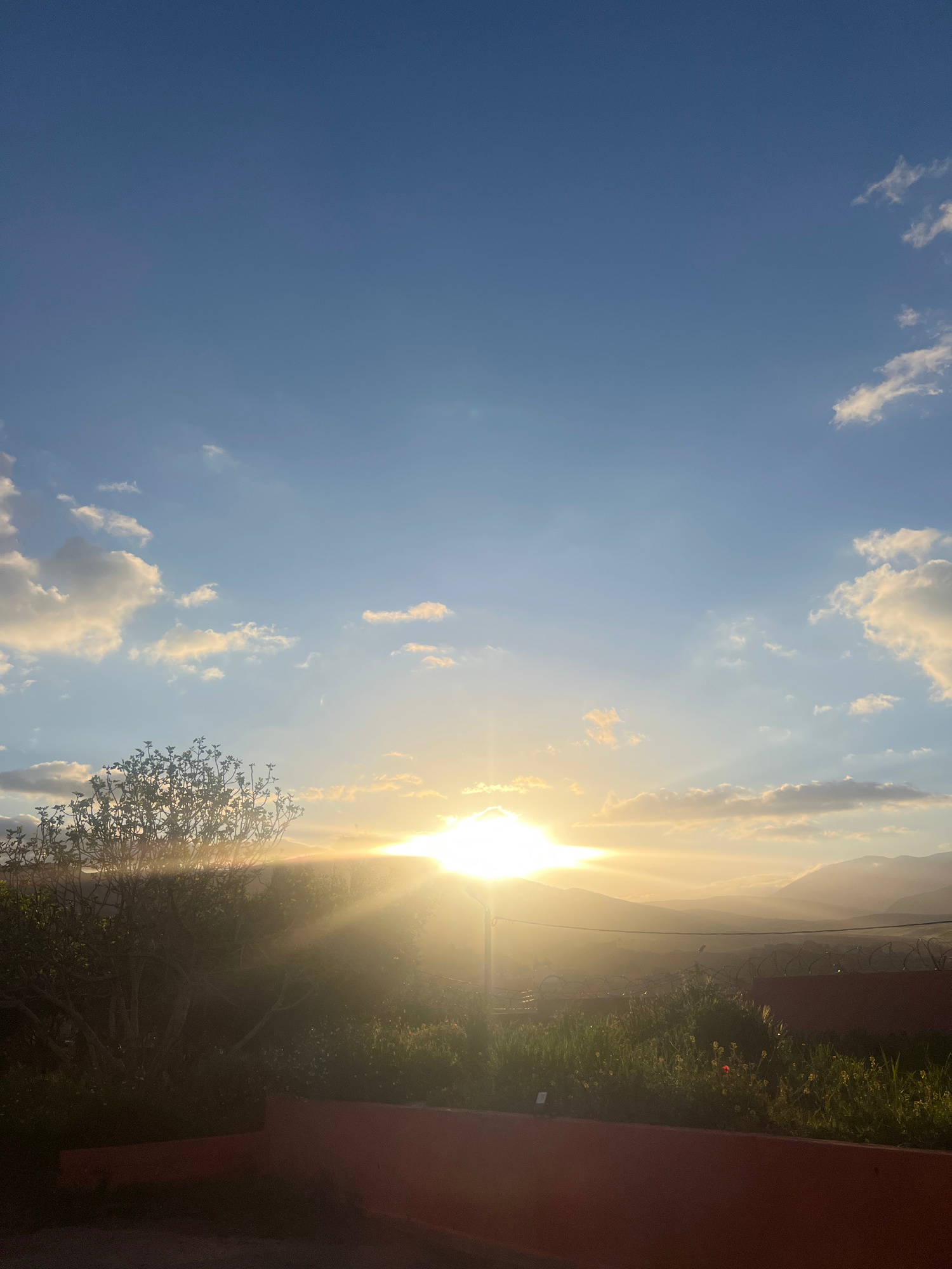 Here's a detailed description of the image: **General Impression:** The image shows a sunlit scene with a view of a bright sky, clouds, and part of a landscape. The strong sunlight makes it difficult…read more