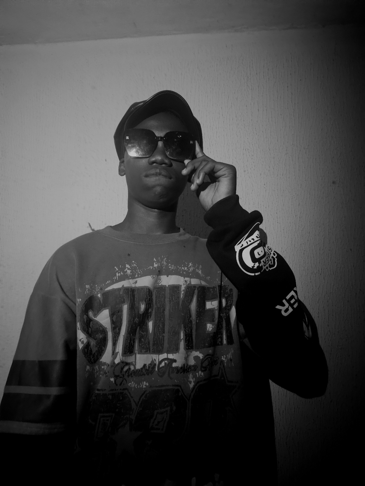 The image depicts a person wearing a black cap and sunglasses, positioned indoors against a pale wall. The individual is wearing a t-shirt with a large, stylized graphic that includes the word "STRIKE…read more