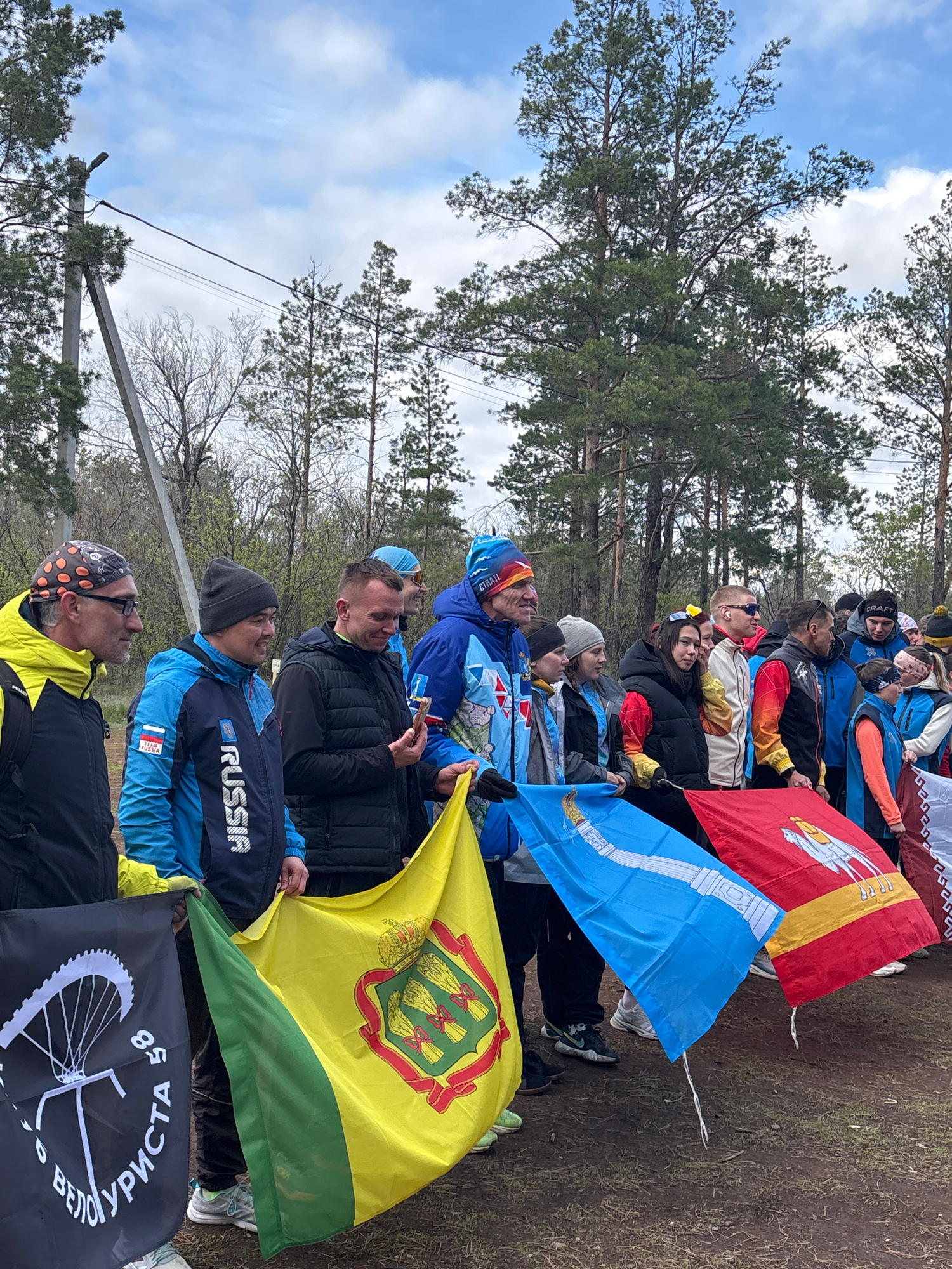 The image depicts a gathering of people outdoors, likely for a sporting or outdoor event. A group of adults, predominantly men, are visible standing or sitting, dressed in casual and sportswear. The b…read more