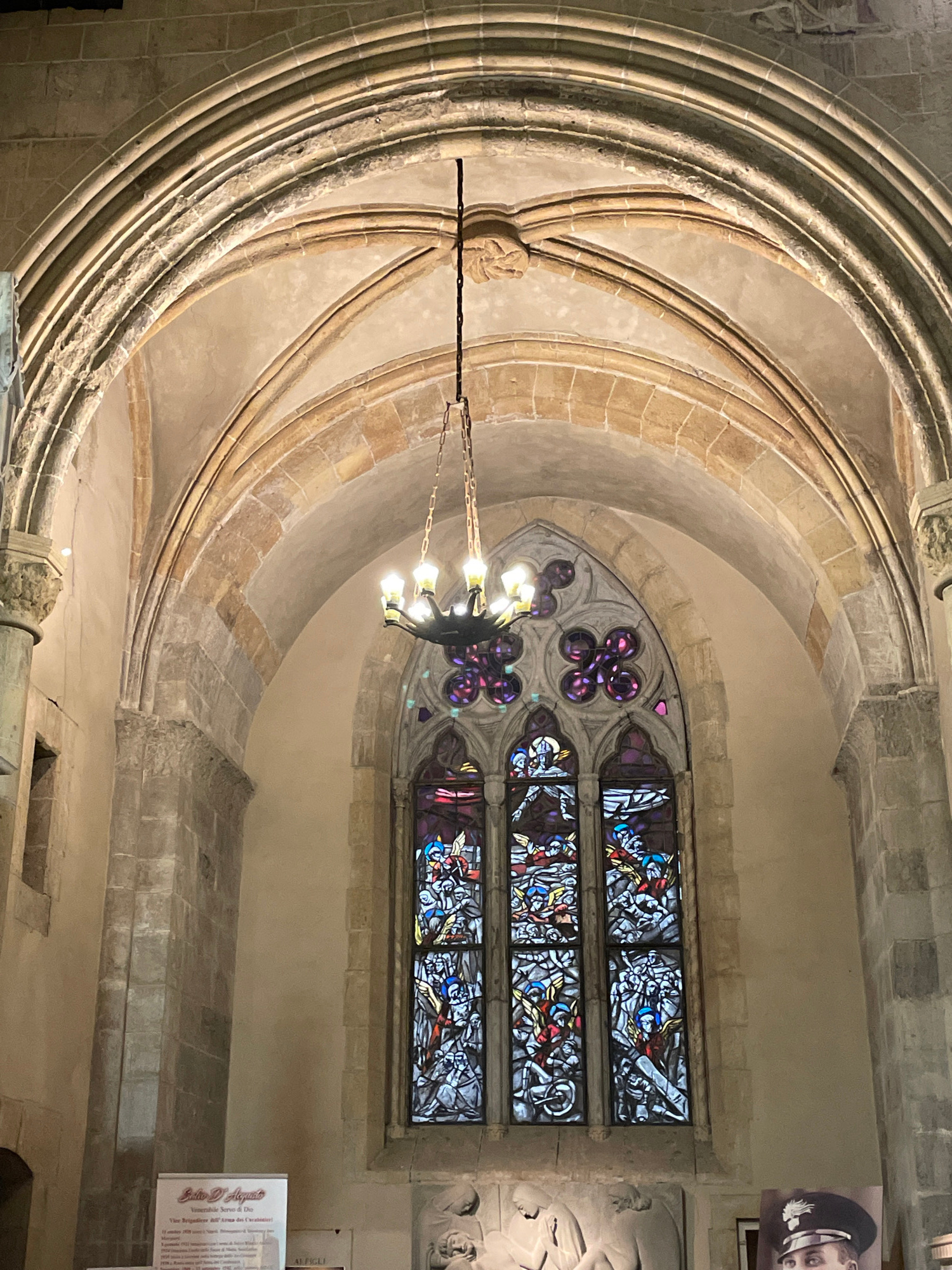 This image depicts the interior of a historic basilica or church in Naples, Italy, specifically identifiable as likely the Basilica of San Paolo Maggiore due to a visible informational placard. The sc…read more