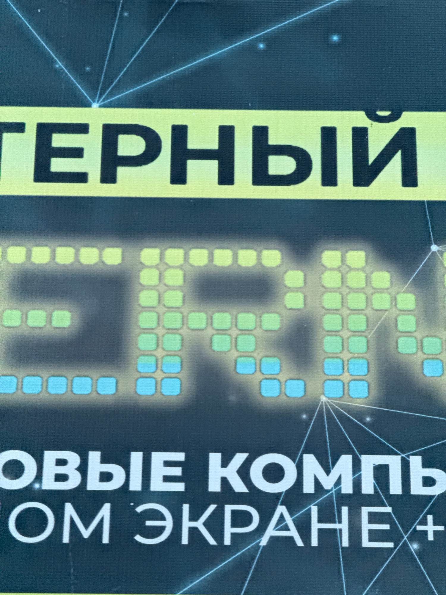 The image shows a close-up of a promotional poster or sign, likely related to computer technology or gaming. The visible text is in Russian. On the left, the word "ГЕРНЫЙ" ("GERNYY") is printed vertic…read more