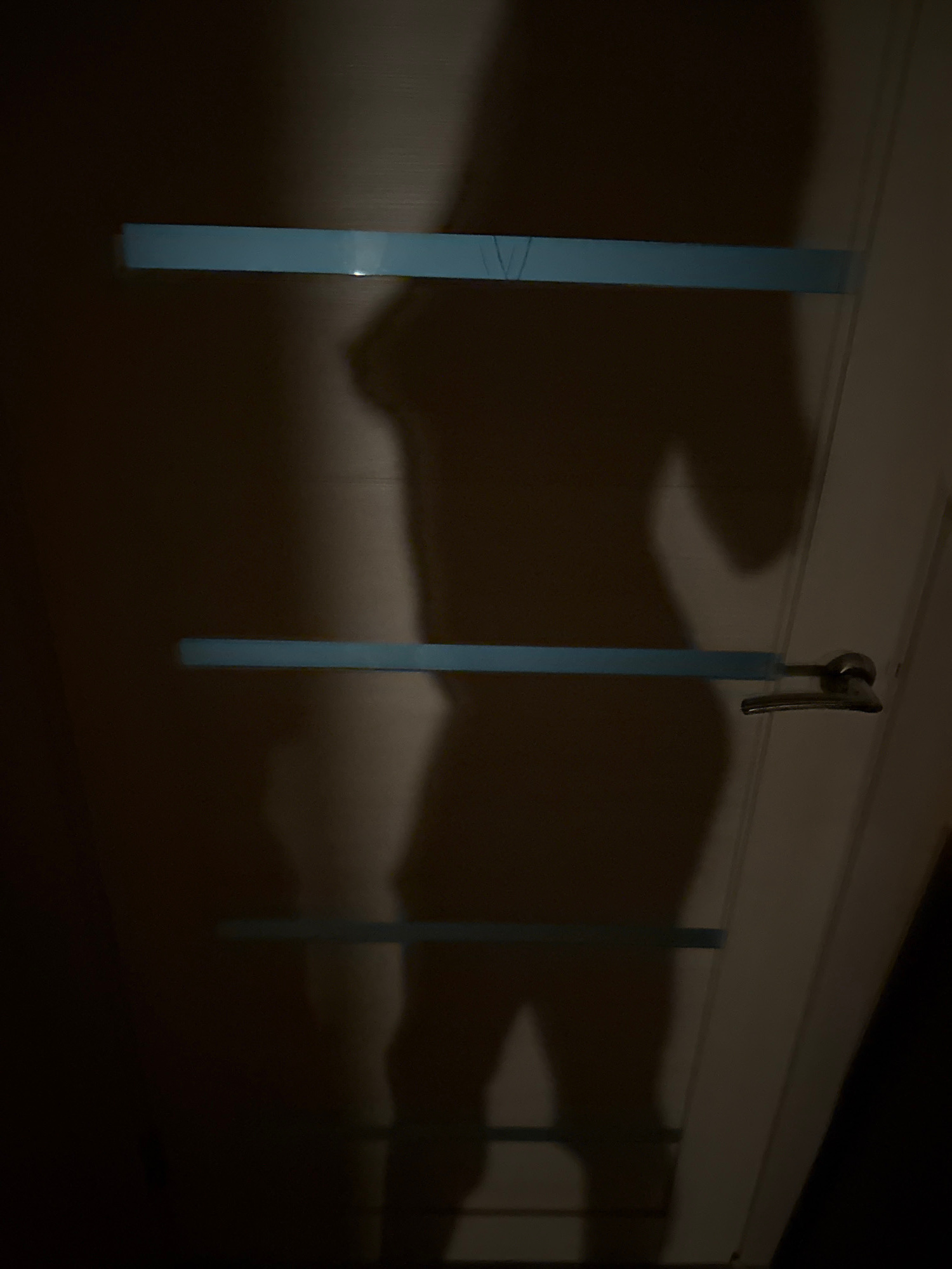 A dimly lit, possibly indoor, scene features a light-colored surface, likely a wall or door. Vertical light-blue tape strips are affixed to the surface, seemingly attached at regular intervals. Above…read more