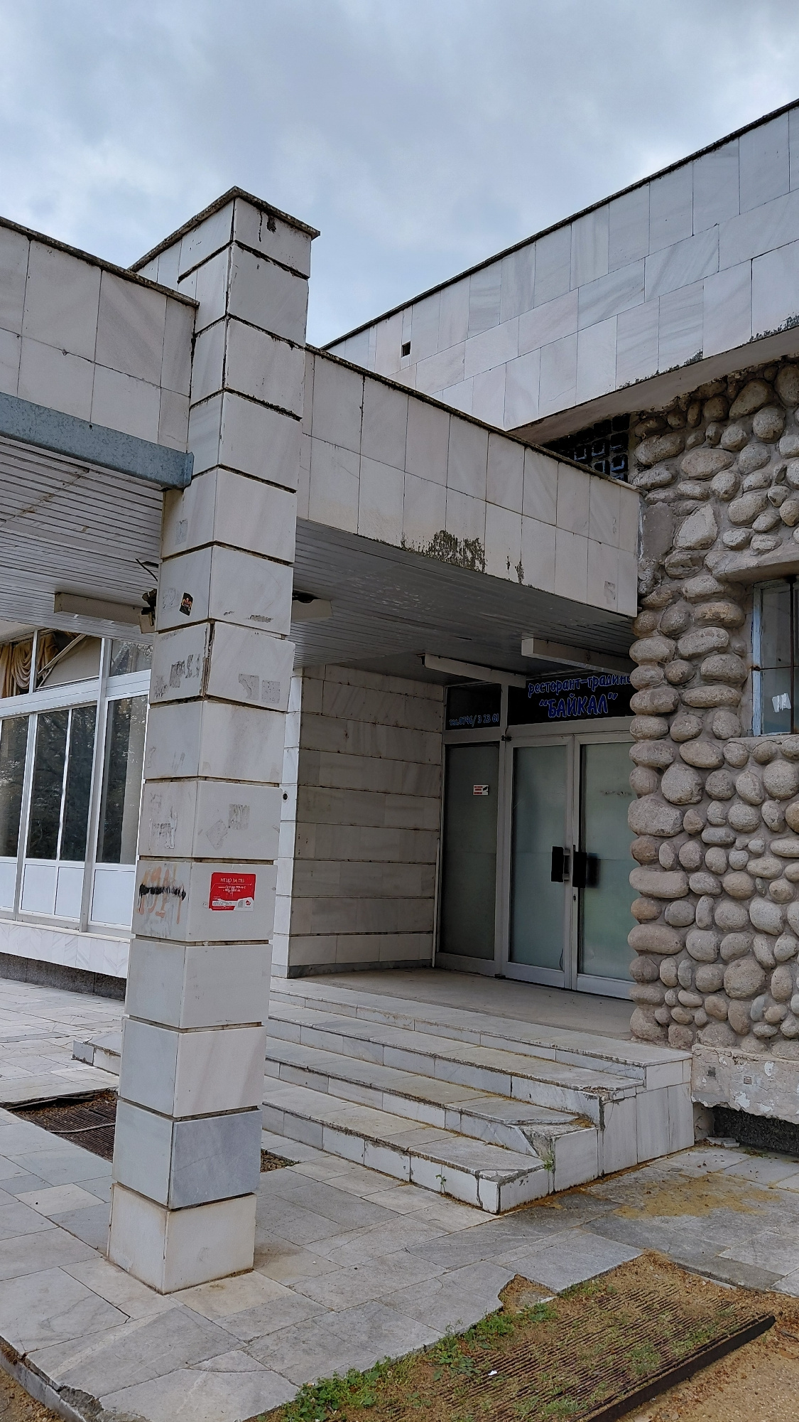 The image depicts a building in an urban environment, with the city and country of its location being unknown. The building's exterior features a combination of materials, including white marble tiles…read more