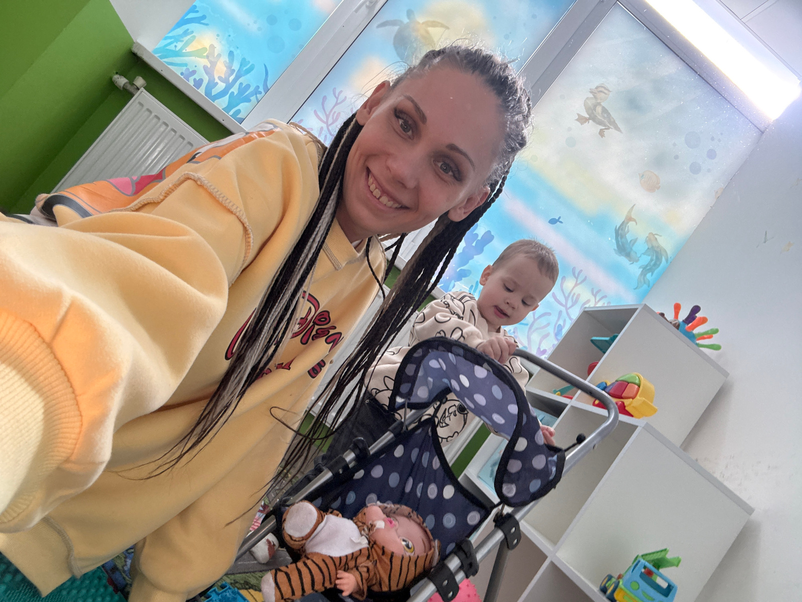 The image captures a woman and a child in a room, likely in Rusanovo, Russia, though precise location confirmation would necessitate additional details. The woman is smiling directly at the camera, wi…read more