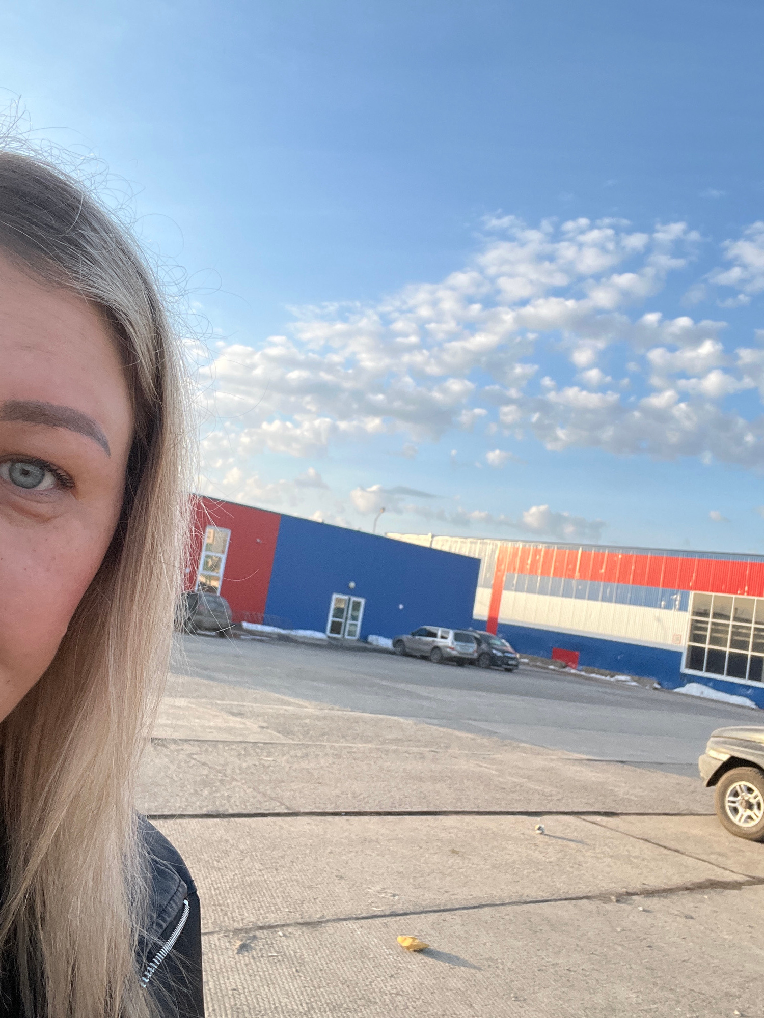 A selfie-style photograph shows a woman with blonde hair and blue eyes, presumably standing in a parking lot. The location appears to be in Chaikovsky, Russia based on the architecture visible. In the…read more