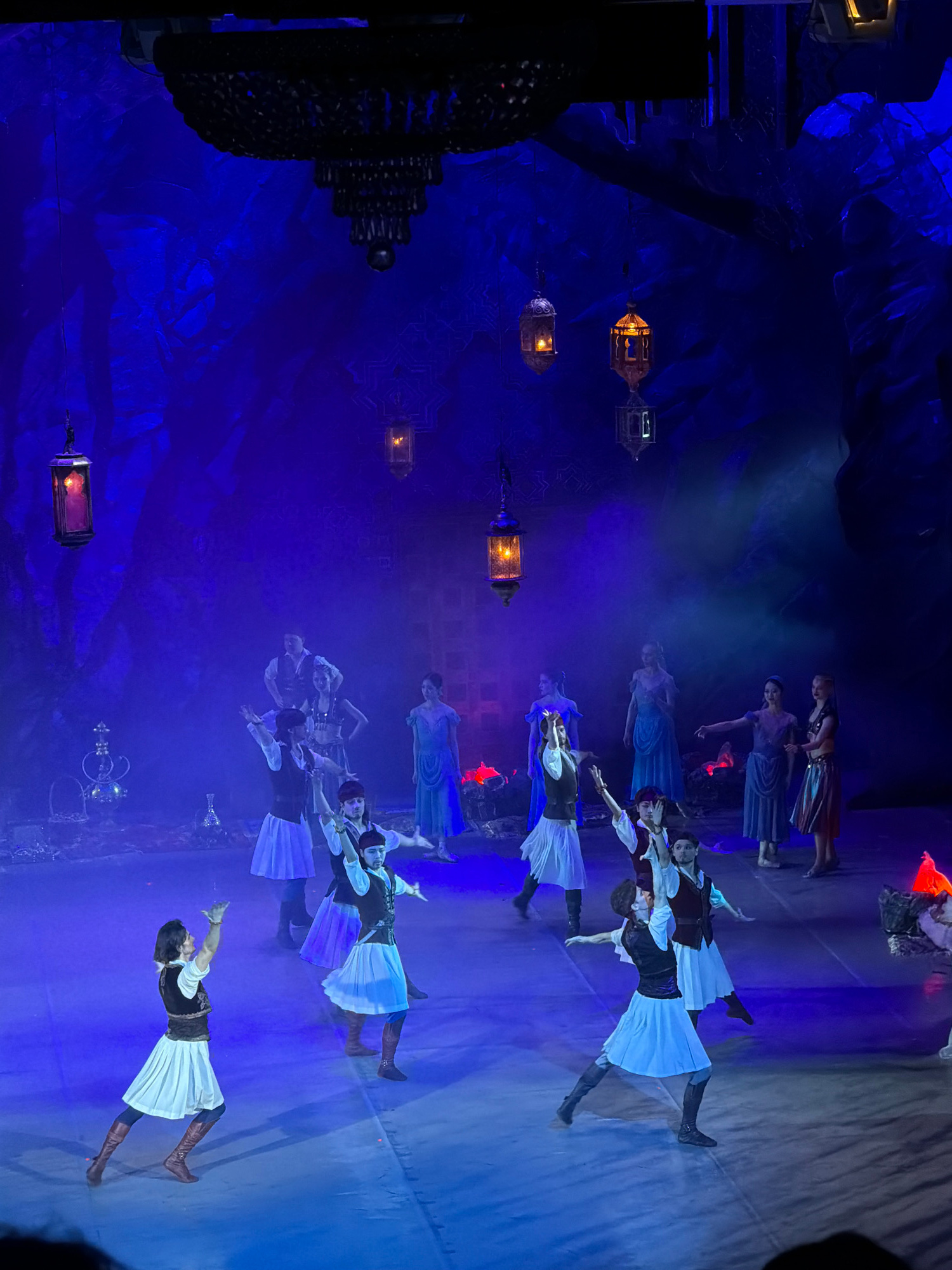 A medium-angle shot depicts a stage performance, likely in Izhevsk, Russia, given the architectural motifs and costuming styles commonly associated with that region. The scene is bathed in cool, blue…read more