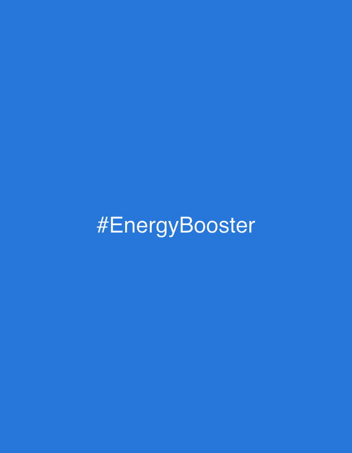 The image displays a simple graphic with a solid, vibrant blue background. Centered horizontally and slightly below the vertical midline of the frame, the white text "#EnergyBooster" is clearly visibl…read more