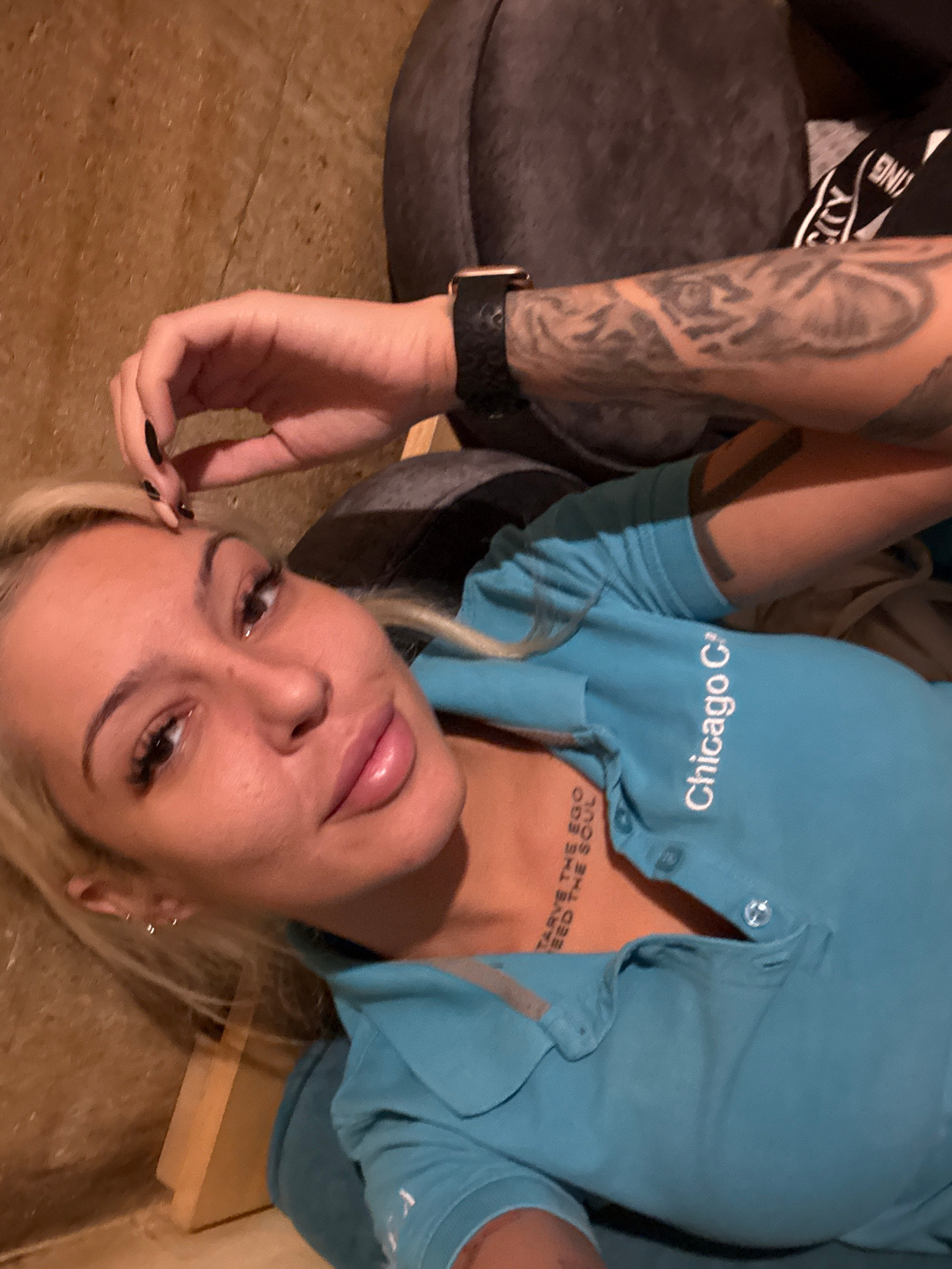 The image displays a female individual lying down, captured from an overhead perspective, with her head positioned towards the bottom of the frame. The setting is indoors, likely in Plovdiv, Bulgaria,…read more
