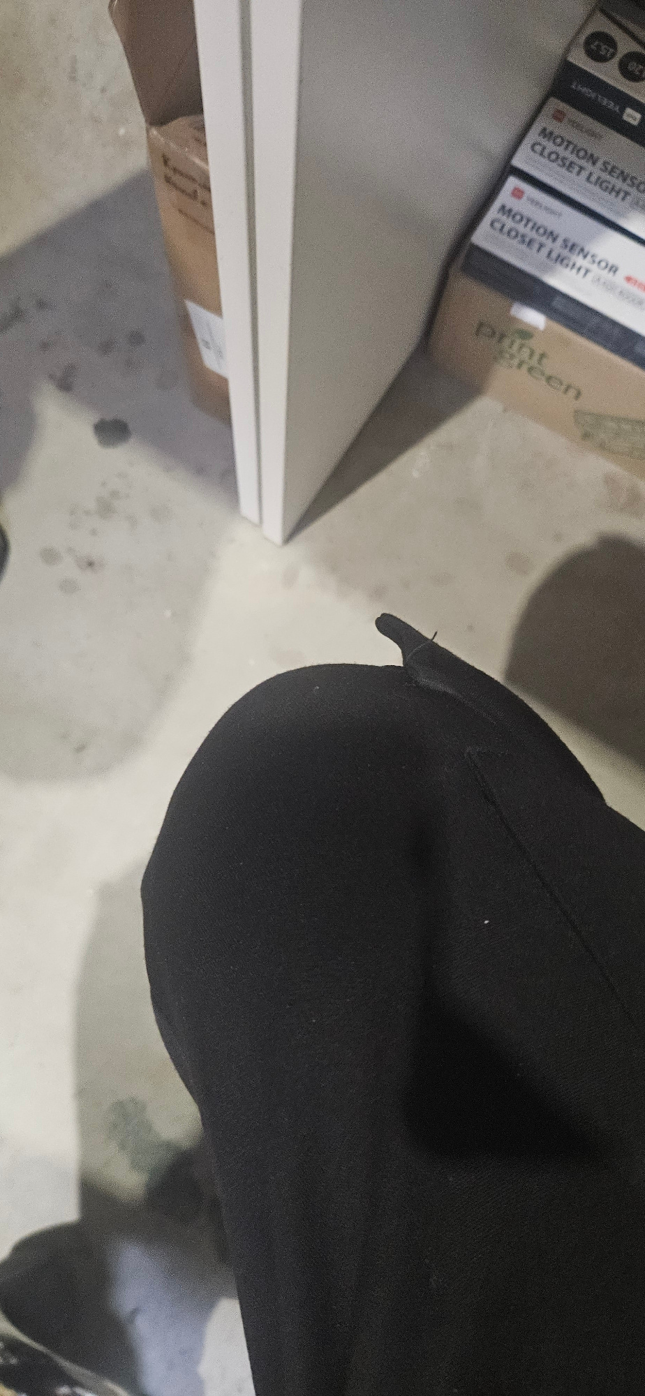 This image, taken in Plovdiv, Bulgaria, presents an indoor scene with a partial view of a person and several boxed items. On the right side of the frame, the lower body of a person, likely the thigh a…read more