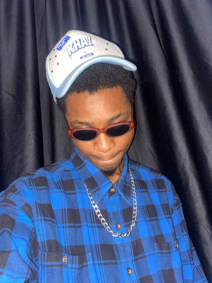 A young adult male, appearing of dark complexion with short dark hair and a sparse goatee, is depicted in a headshot against a plain, dark fabric background. He wears a white baseball cap with a lightβ¦read more