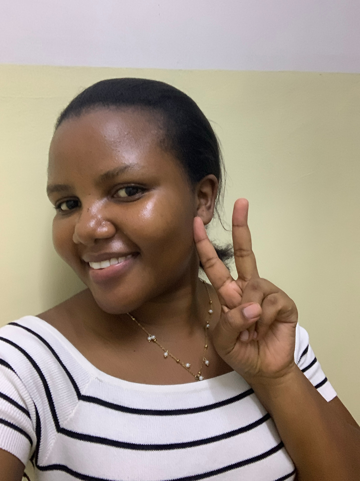 A young woman is posing for a portrait indoors. She is wearing a white top with black stripes and a delicate gold necklace with small pearl-like beads. Her dark hair is pulled back, and she is smiling…read more