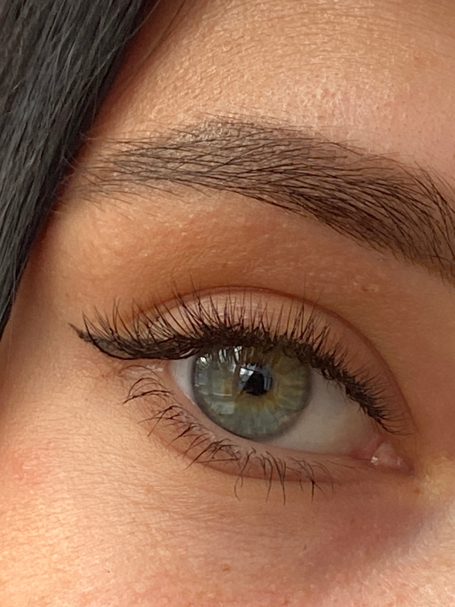 A close-up, high-resolution image depicts the left eye and eyebrow of a person, observed from a slightly elevated and side angle. The eye features a striking green-grey iris with a visible dark pupil,…read more