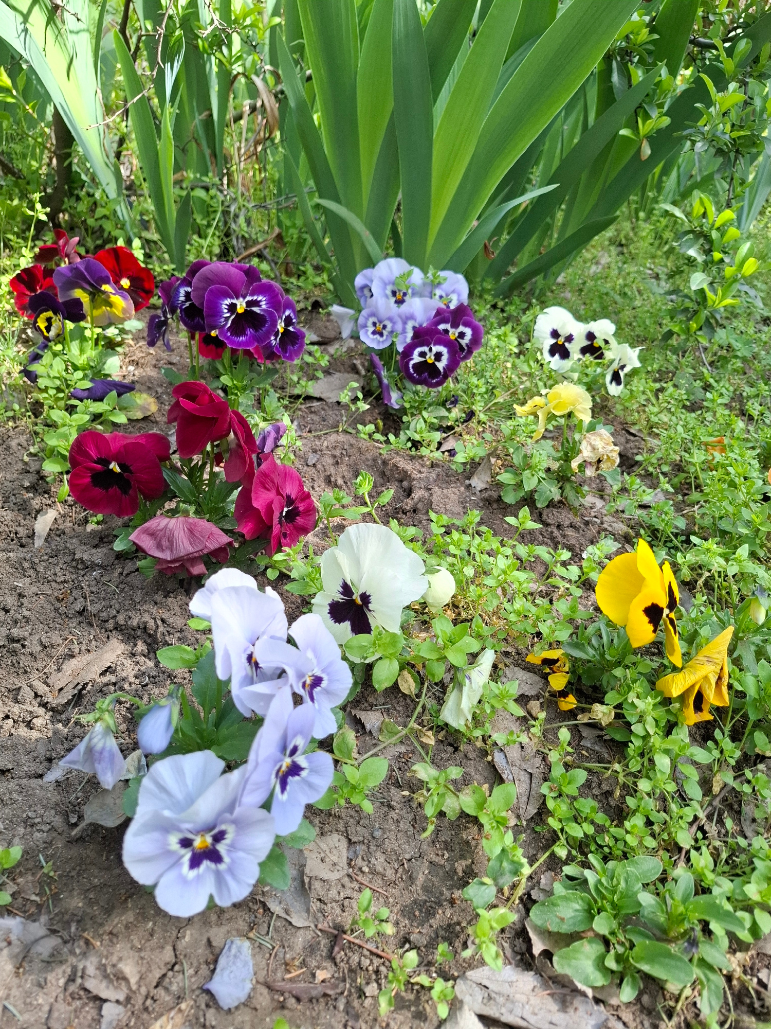 This image captures a vibrant close-up view of a garden bed teeming with colorful pansies in Plovdiv, Bulgaria. The scene is dominated by clusters of Viola flowers, showcasing a rich variety of hues i…read more
