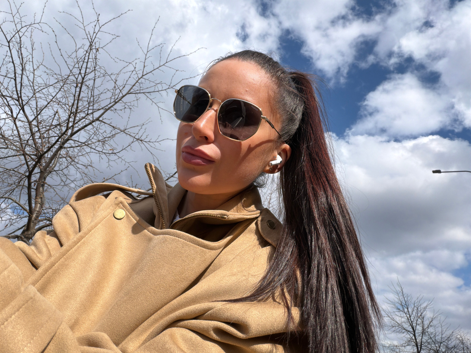 An upward-facing, portrait-style photograph, originally oriented upside down, captures a person from a low angle against a backdrop of the sky and bare trees in Khimki, Russia. The individual, likely…read more