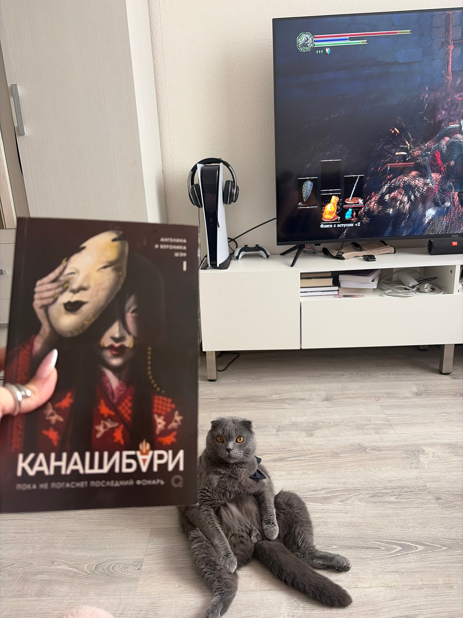 The image shows an indoor scene in a home environment. A flat-screen television is mounted on the wall, displaying a video game. Below the television is a white entertainment unit with a PlayStation 5…read more
