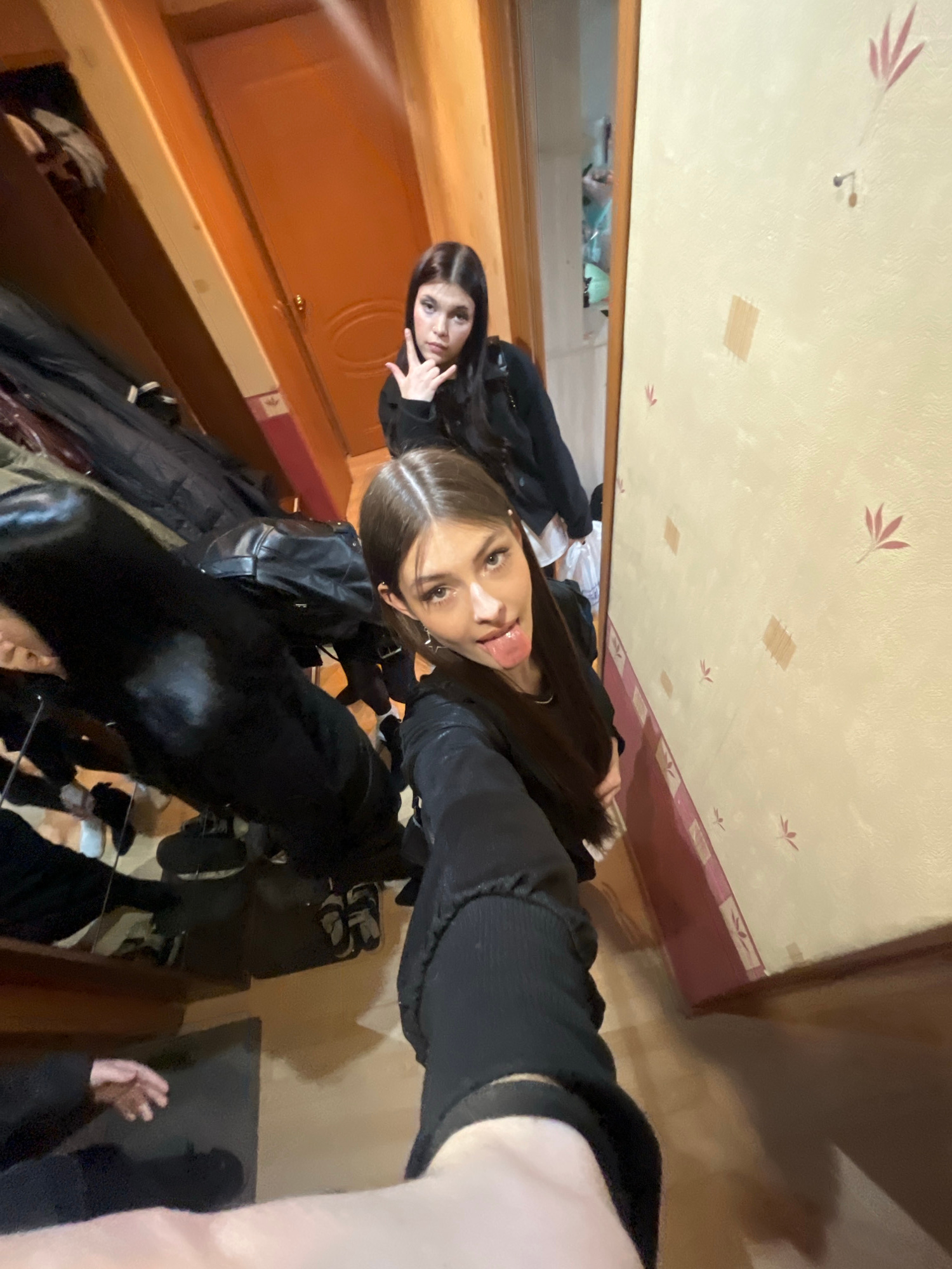 This is a casual, indoor selfie featuring two young women, likely taken in a room or hallway in Vsevolozhsk, Russia. The image is oriented vertically but appears to be taken with the camera held at an…read more