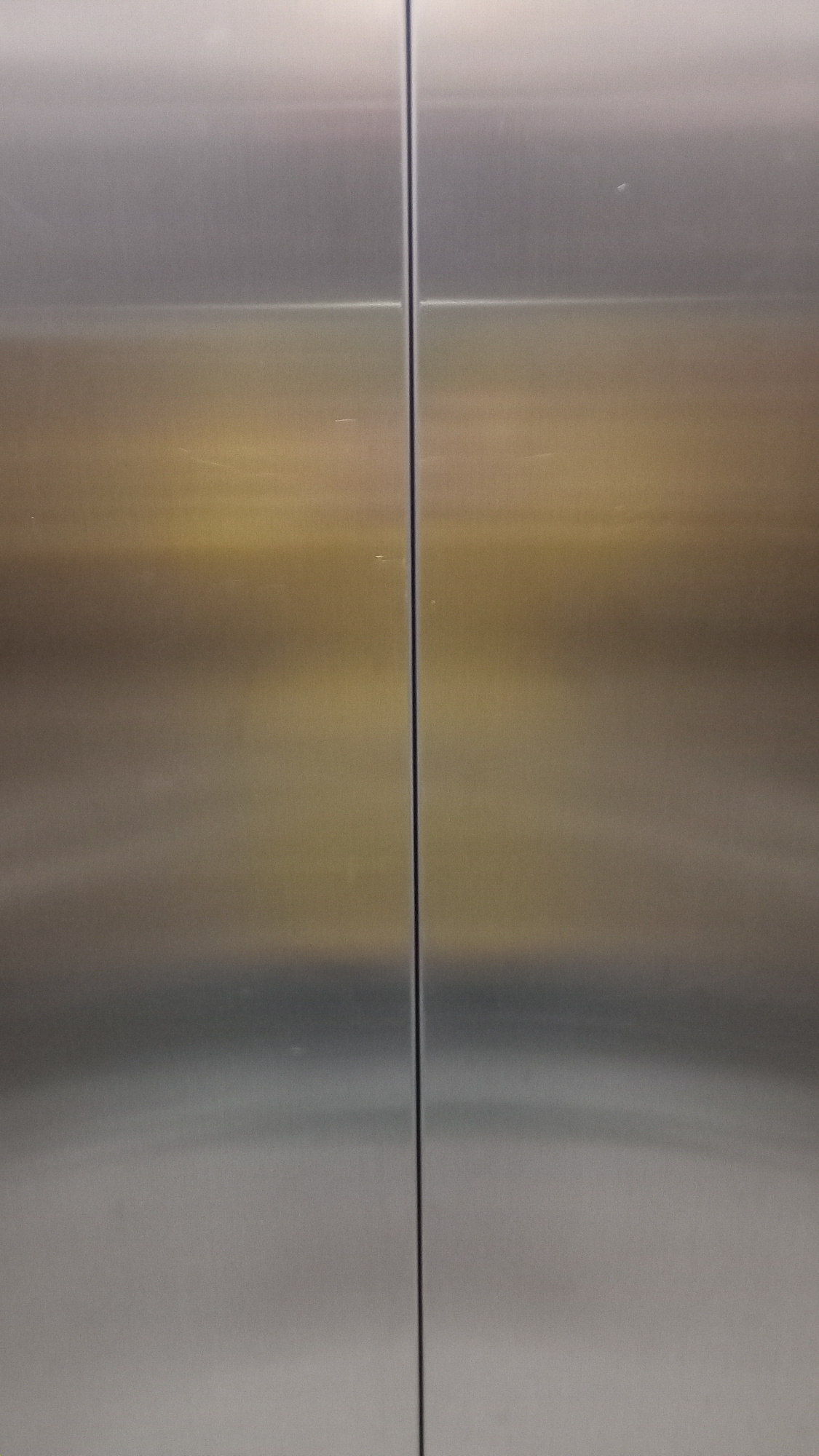 The image shows a close-up of a metal surface with a horizontal seam. The metal has variations in color, appearing silver, gold, and grey. There are minor scratches on the surface. The location and co…read more