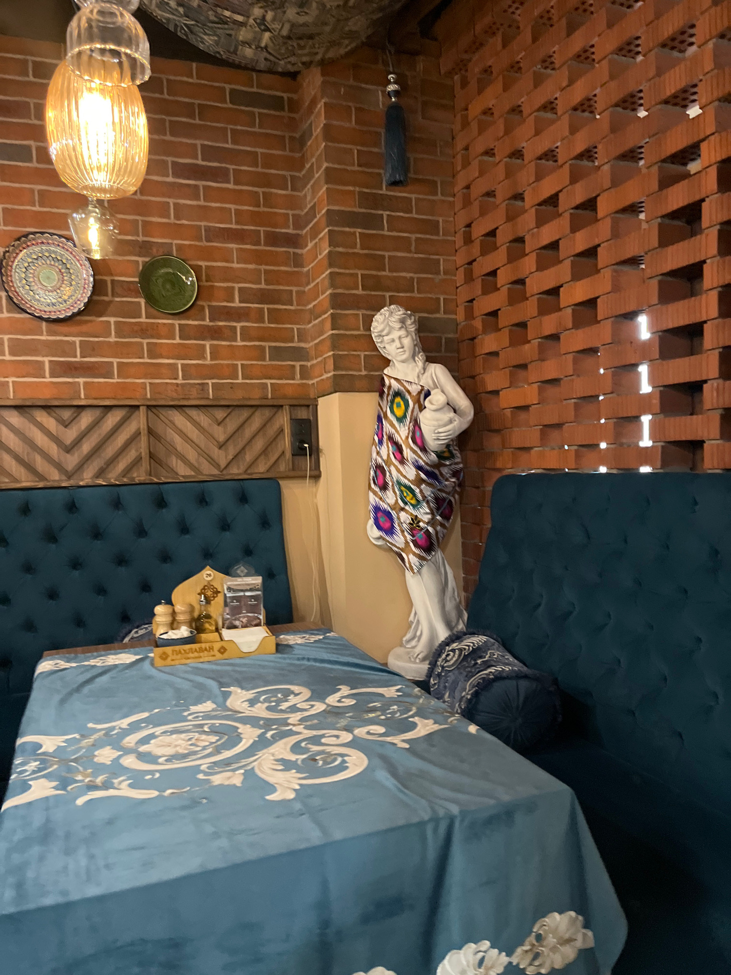 This image captures the interior of what appears to be a restaurant or cafe in Izhevsk, Russia, showcasing an eclectic and richly decorated dining space. The perspective is from a slightly elevated, a…read more