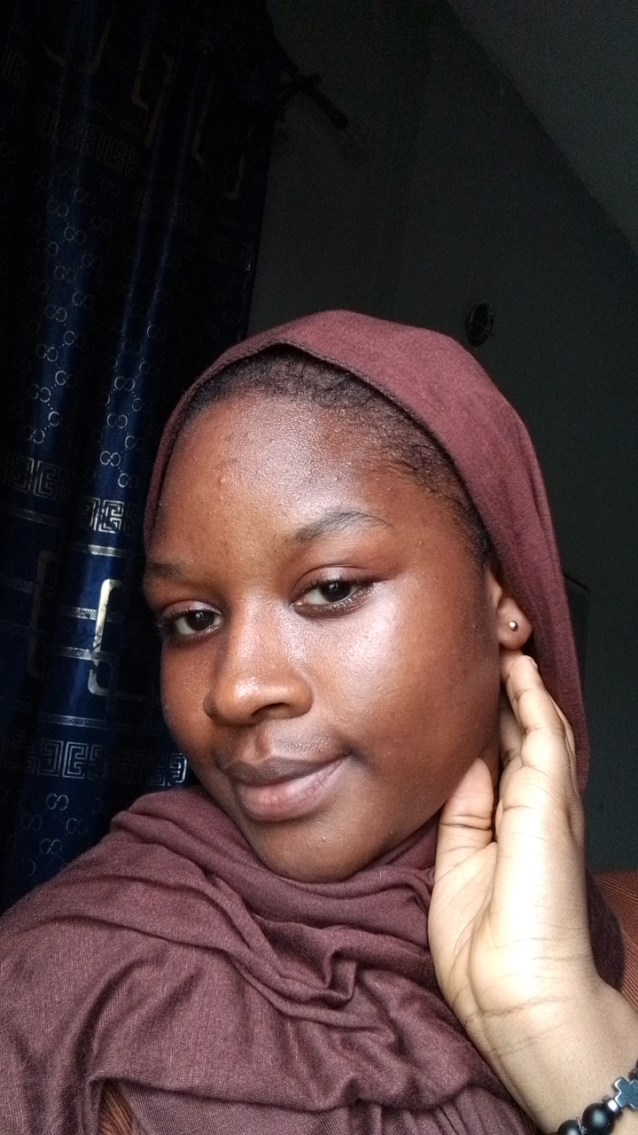 A woman wearing a brown headscarf and a bracelet, sits, holding a round, green object near her mouth, as she looks up. Overhead is a ceiling fan against a white ceiling. The location is Keffi, Nigeria. | Open Wire