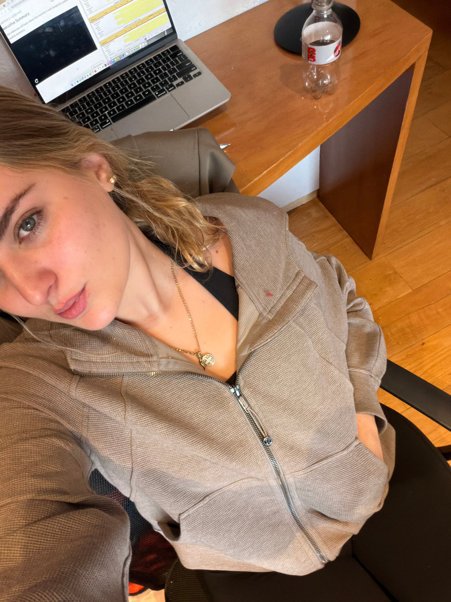 An indoor scene, identified as being located in San Bernardino Tlaxcalancingo, Mexico, depicts a young woman taking a selfie. The woman has light skin, light-colored eyes, and blonde-light brown hair.…read more