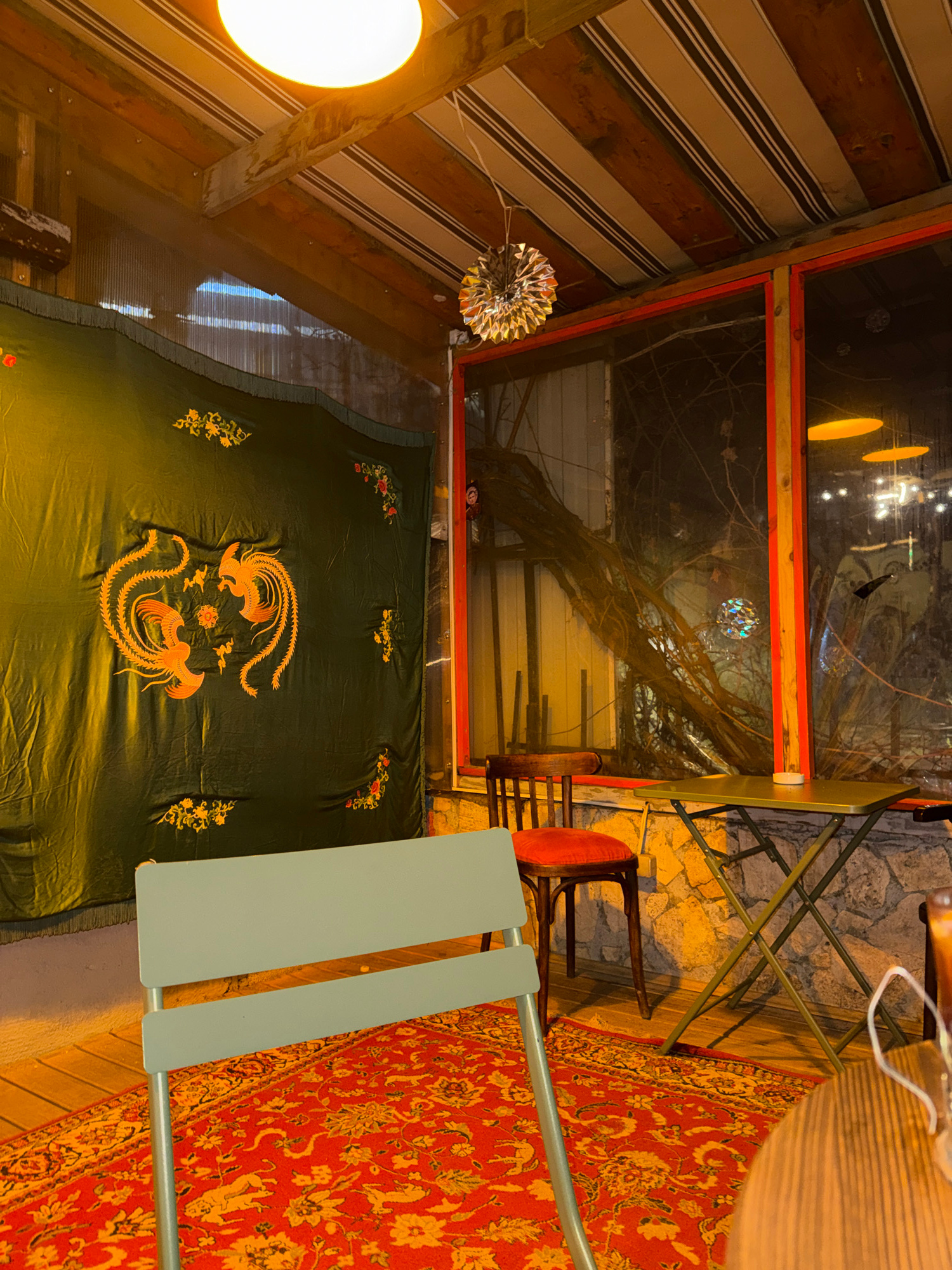 Captured indoors, the photo reveals a blend of vibrant colors and diverse objects within a room. The walls and ceiling, constructed from striped wooden panels, create a warm, textured atmosphere. The…read more