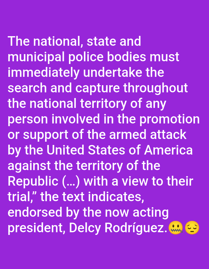 The image displays text against a purple background. The text is a decree stating that national, state, and municipal police bodies must immediately search and capture anyone involved in promoting or…read more
