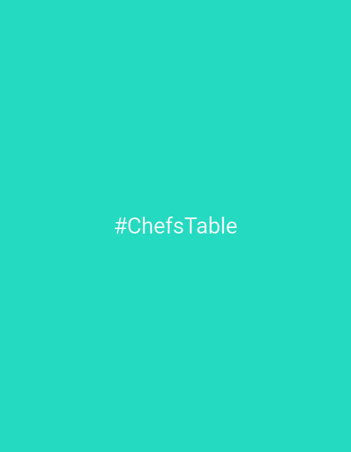 The image is a solid turquoise background with the white text "#ChefsTable" in the center. No location is apparent from the image.