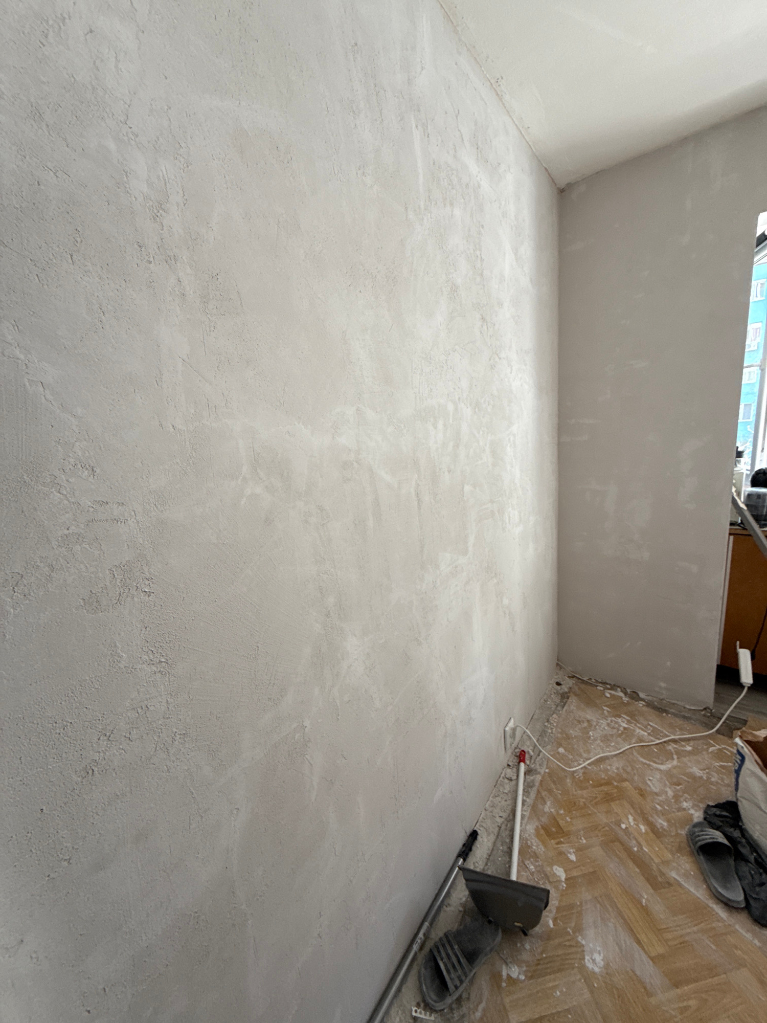 The scene depicts an interior space undergoing renovation, likely in Stara Zagora, Bulgaria (city inferred based on provided location). The primary focus is on a room with walls and a floor covered in…read more