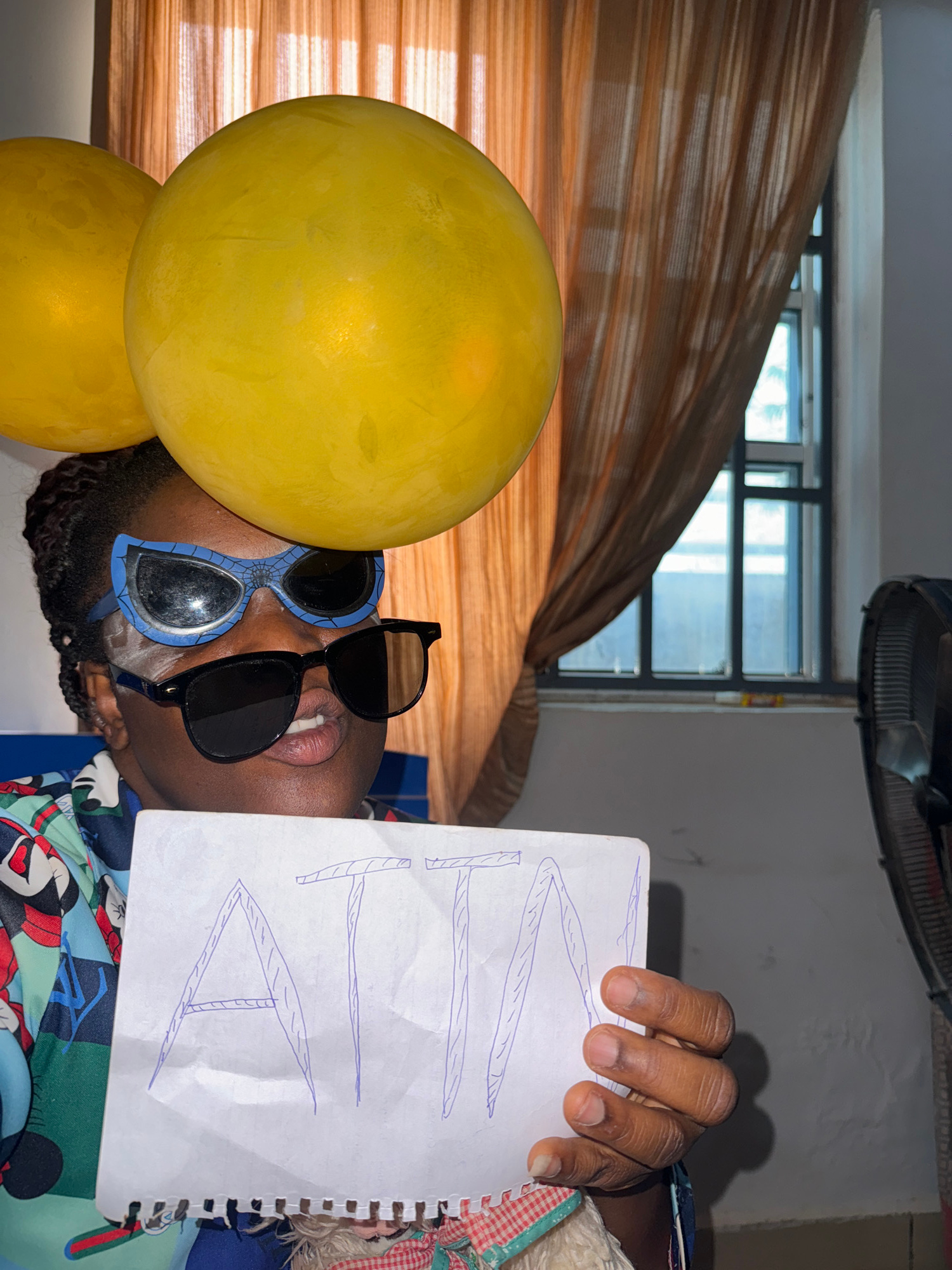 A man is shown in an indoor environment. The photograph is rotated counterclockwise. He is holding a notebook with the letters "MTN" written on it in blue ink. He is wearing sunglasses, one pair blue…read more