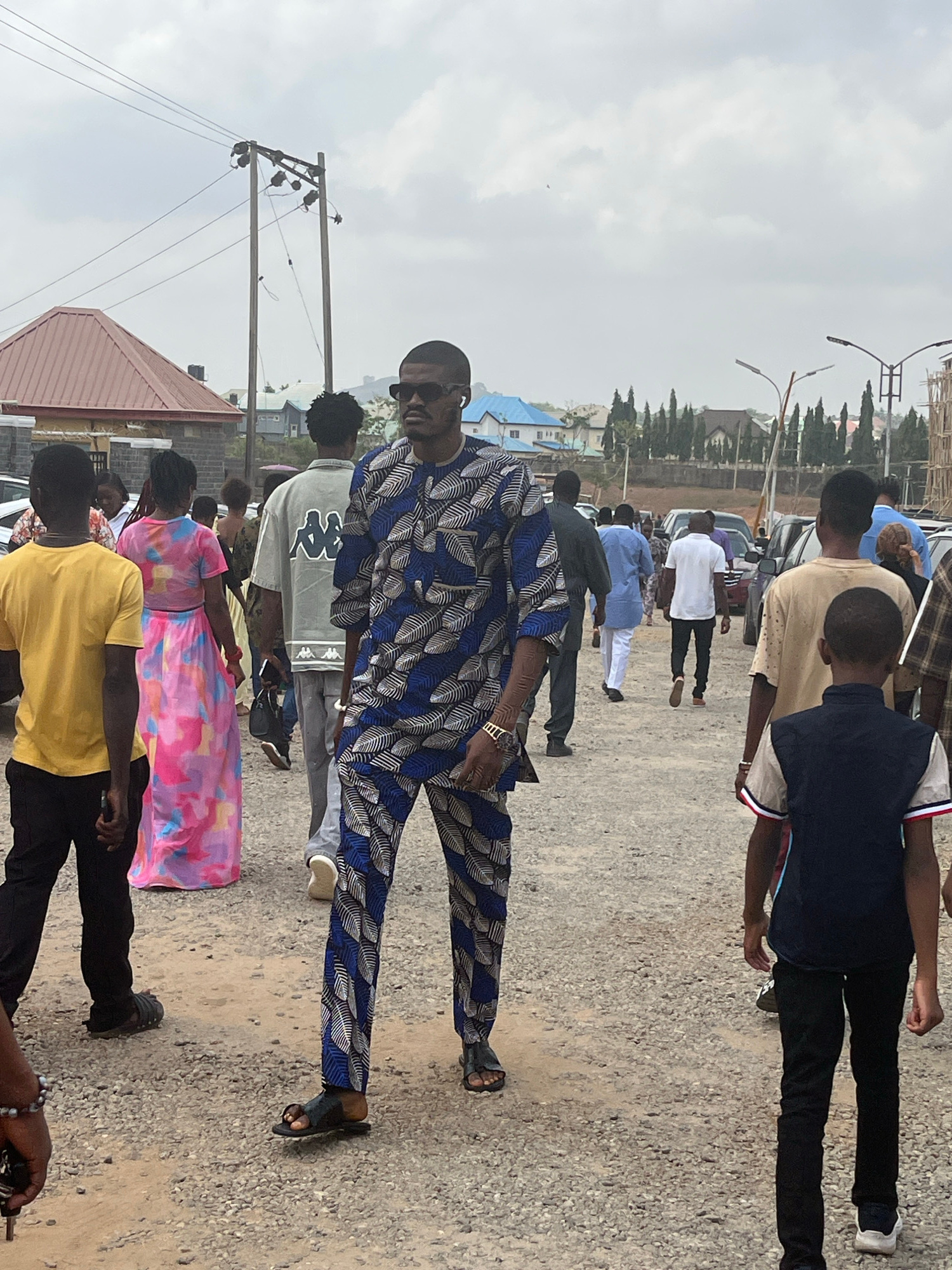 The image captures a group of people outdoors, on what appears to be a gravel-covered area. The scene is likely in a residential or semi-urban part of Abuja, Nigeria, given the presence of buildings,…read more