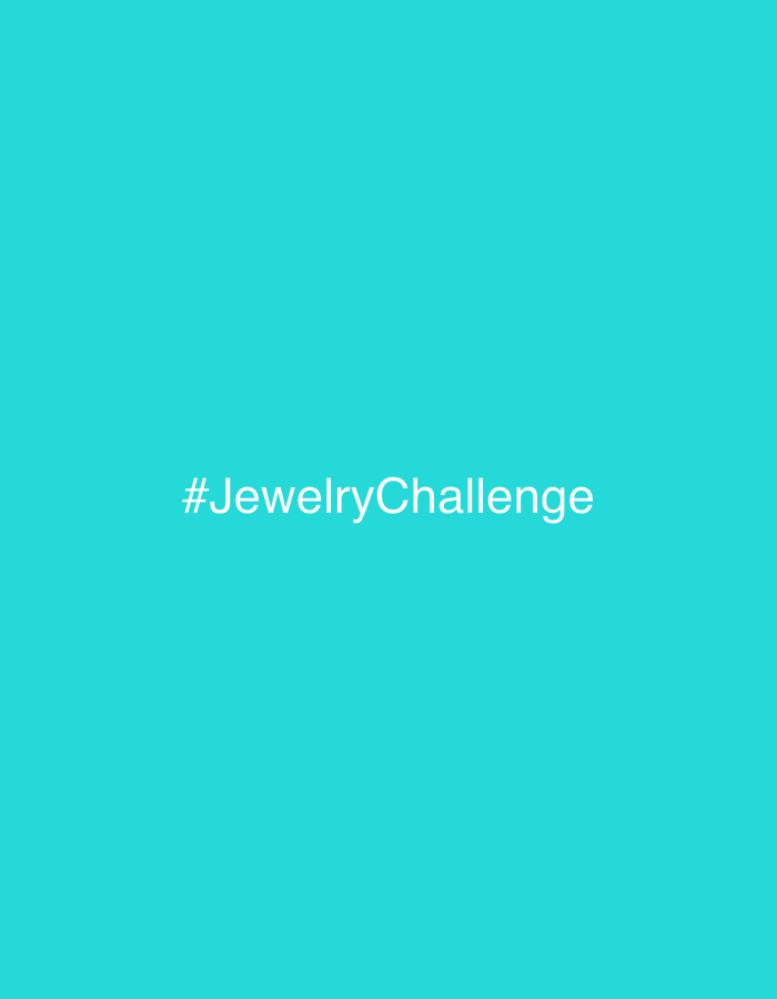 The image displays a solid, uniform teal-colored background. Centered horizontally and vertically within this background is the white text "#JewelryChallenge", rendered in a sans-serif typeface. No in…read more