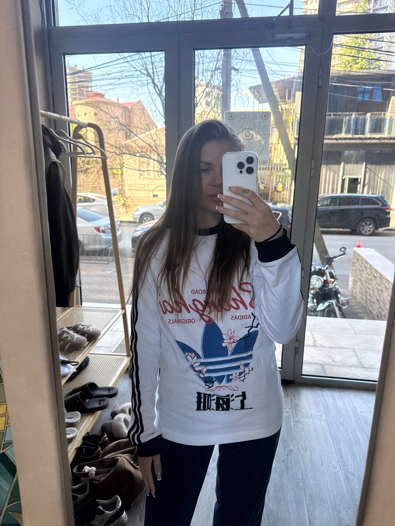 A young woman is depicted taking a mirror selfie indoors, with an outdoor street scene reflected behind her. She holds a white iPhone, likely a 14 Pro model, in her right hand. Her face is partially vā¦read more