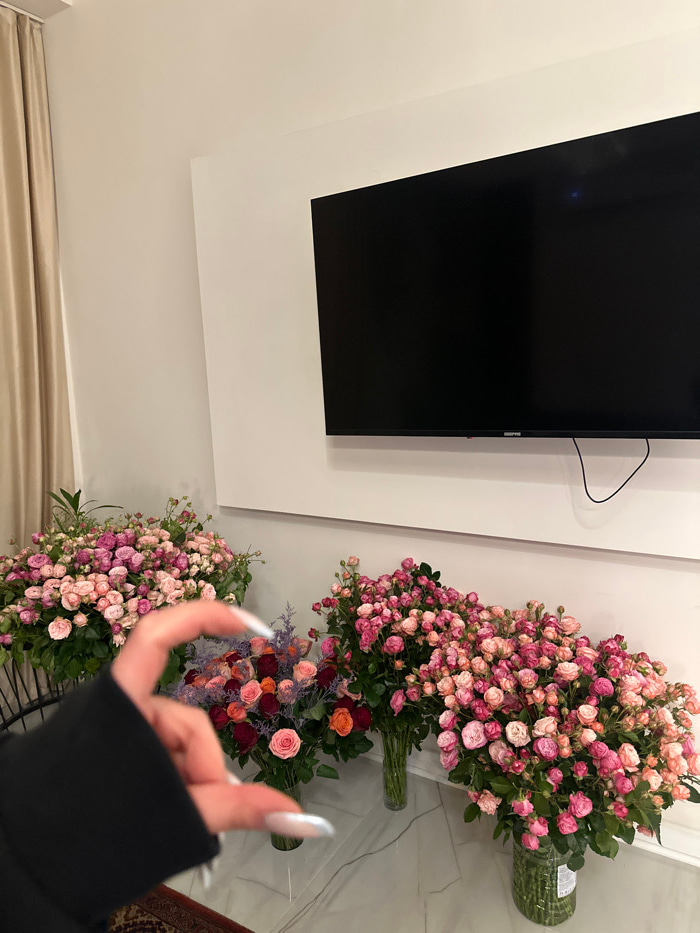 The scene depicts an interior room, likely a modern living space or lobby within Yerevan, Armenia. The specific location within the city is not identifiable. In the background, a large, black Grundig…read more